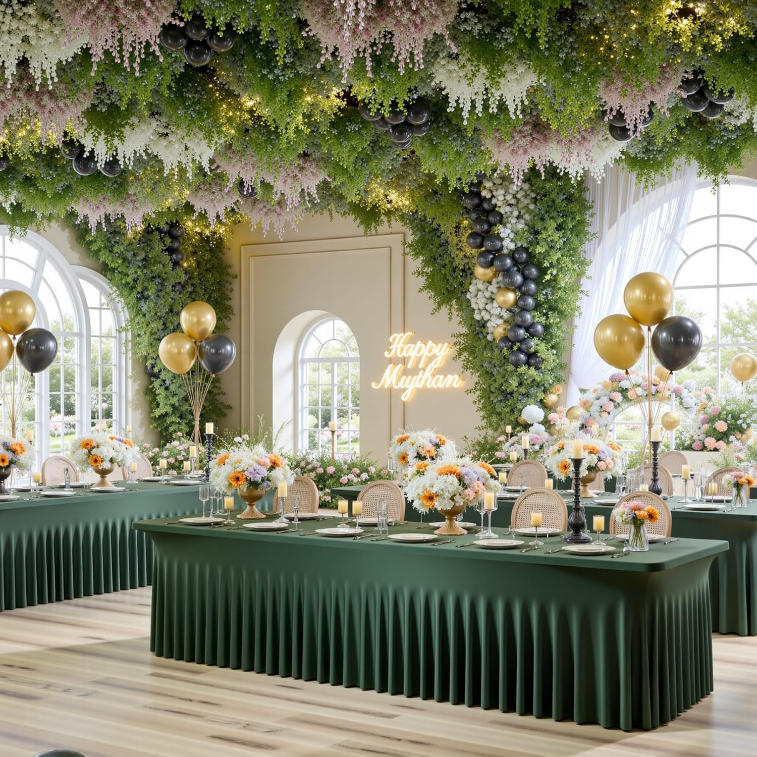 - 1. You will receive 4 Pack hunter green wavy spandex table covers fitted for 8 foot rectangle tables. Manteles de mesa de tela para fiestas.