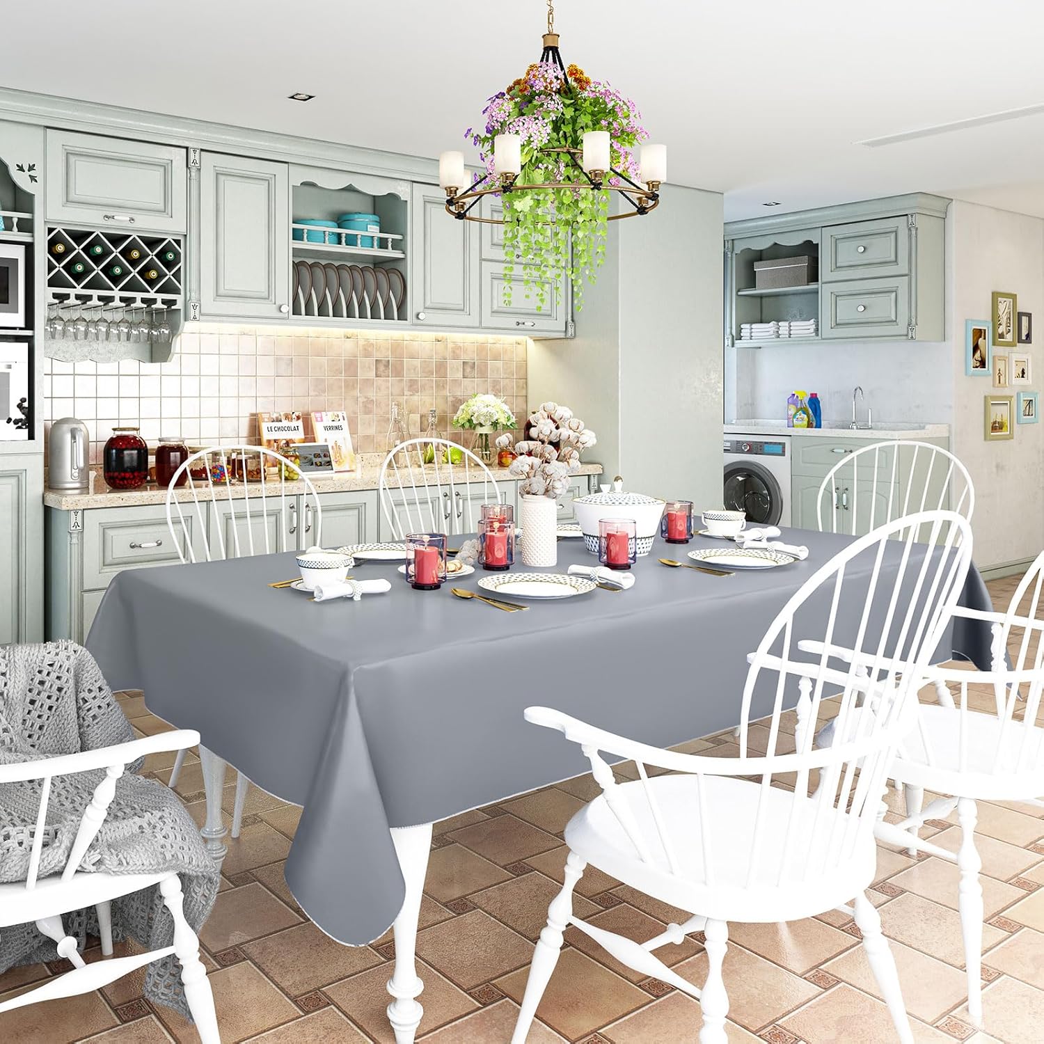 homing 2 Pack Rectangle Vinyl Tablecloth, Waterproof Spillproof Plastic Flannel Backed Table Cloth, Wipe Clean Table Cover for Dining, Buffet Parties and Camping (Grey, 60" x 84")