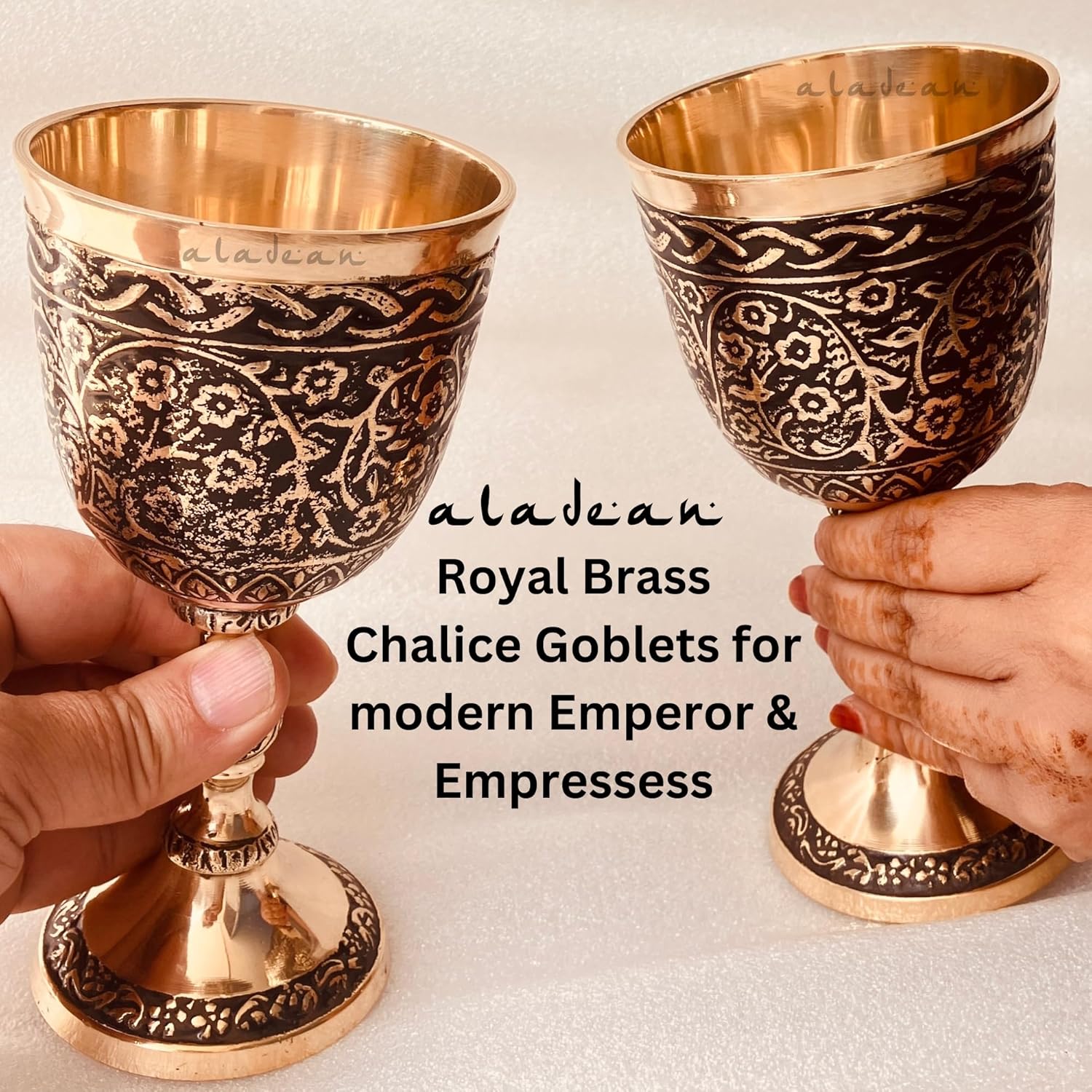 - Medieval Goblets & Royal Vintage Chalice - 1pc Handmade Solid Brass Red Wine Glass Cup Embossed King Arthur Chalice Medieval Goblet - Gothic Retro theme. 1 pc wine cup chalice goblet. Novelty Italian style Unbreakable stemware.