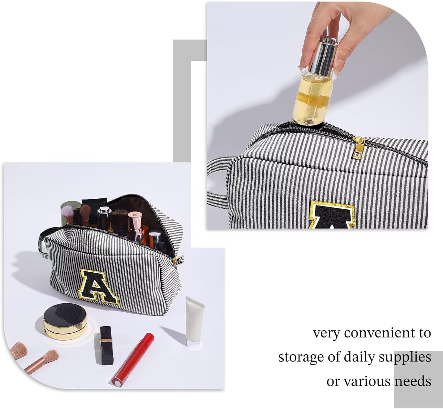 - 【UNIQUE INITIAL DESIGN】This initial cosmetic bag is designed with multiple compartments, which can keep your cosmetics orderly and tidy. The front of the bag have a unique stitch chenille letter will not easy to drop. Suitable for your daily make-up and tools;