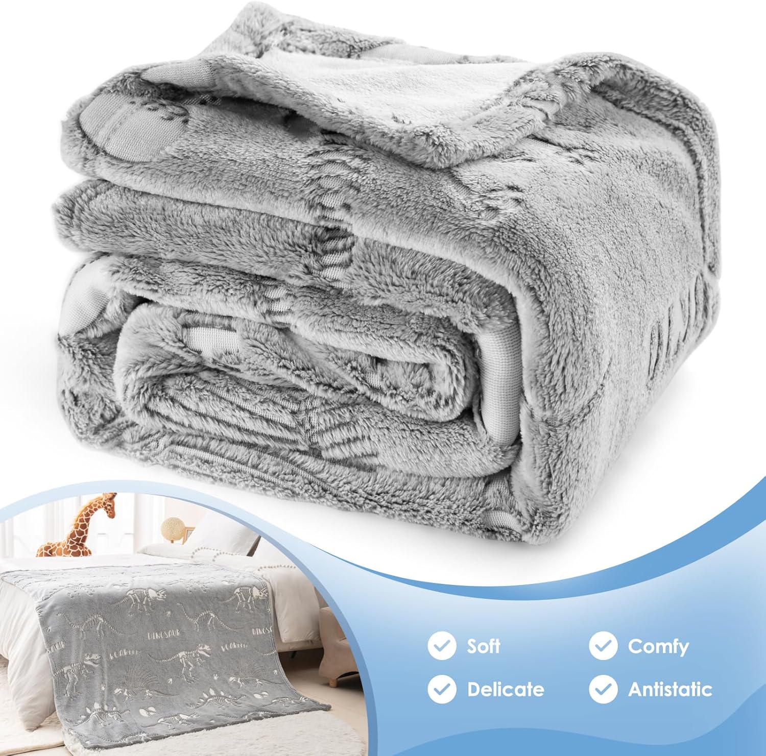 Dinosaur Gifts Toys for Kids Boys - Dino Glow in The Dark Blanket Christmas Birthday Valentines Easter Presents for Age 2 3 4 5 6 7 8 9 10 11 Years Old Teen Girls Toddler Children Throw Gray 50"x60"