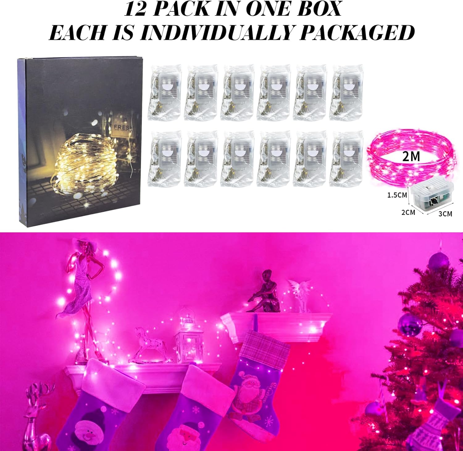 ZGWJ 12 Pack Fairy Lights Battery Operated, 7ft 20 Mini LED Fairy String Lights Silver Wire 3 Modes for DIY, Parties, Wedding, Bedroom, Halloween Christmas Decoration Pink