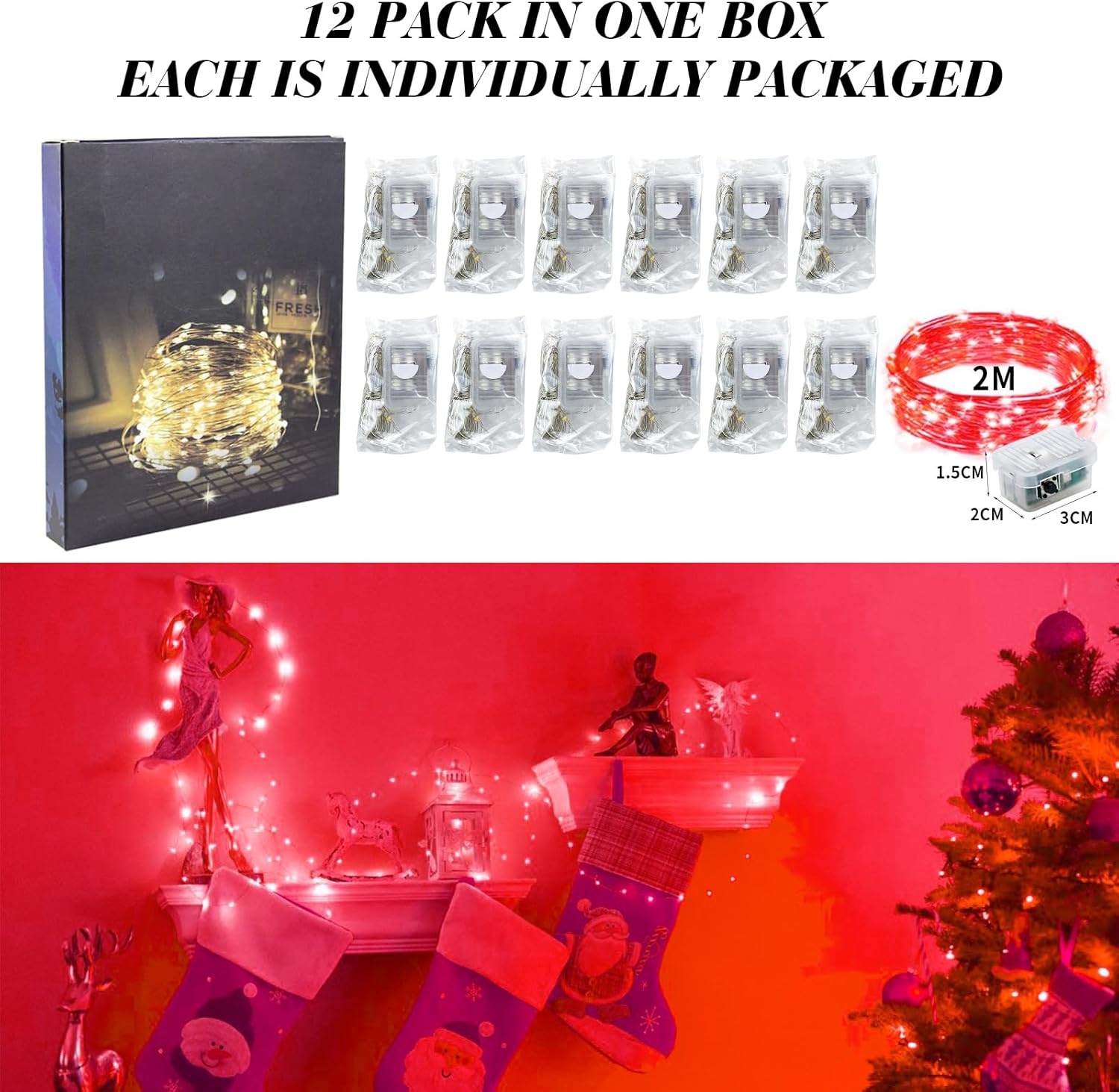 ZGWJ 12 Pack Fairy Lights Battery Operated, 7ft 20 Mini LED Fairy String Lights Silver Wire 3 Modes for DIY, Parties, Wedding, Bedroom, Halloween Christmas Decoration Red