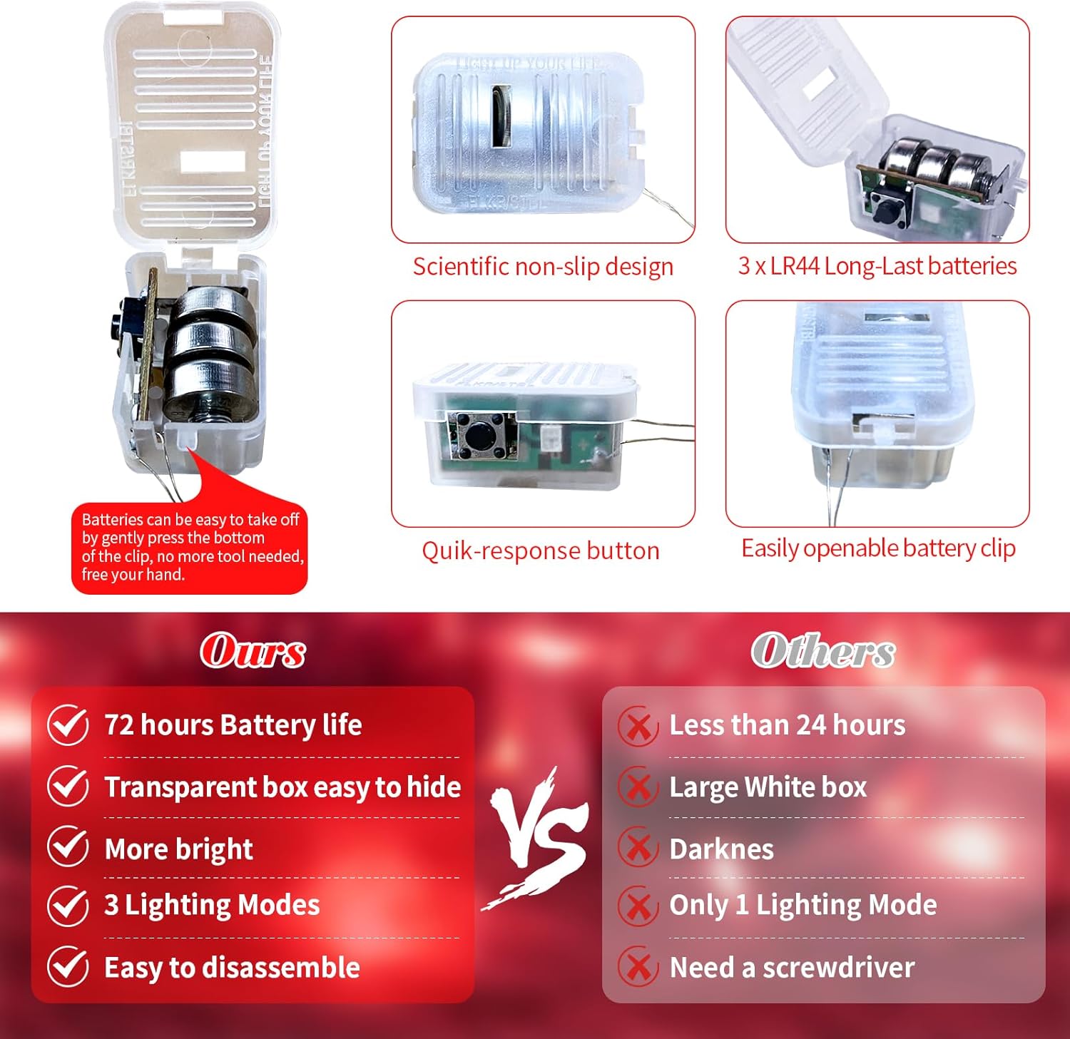 - 3 LIGHTING MODES AND WAIDELY APPLICATION: The fairy lights are super convenient enables to switch 11 flashing modes, Fast Twinkling, Slow Twinkling and Constant Lighting; This versatile battery operated lights can be used for Christmas decoration, holiday, Halloween parties, Valentine's Day, wedding, bedroom and centerpiece table decorations. Giving you different decorative effect and romantic atmosphere
