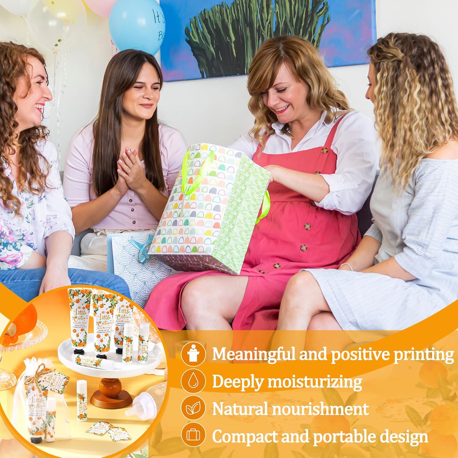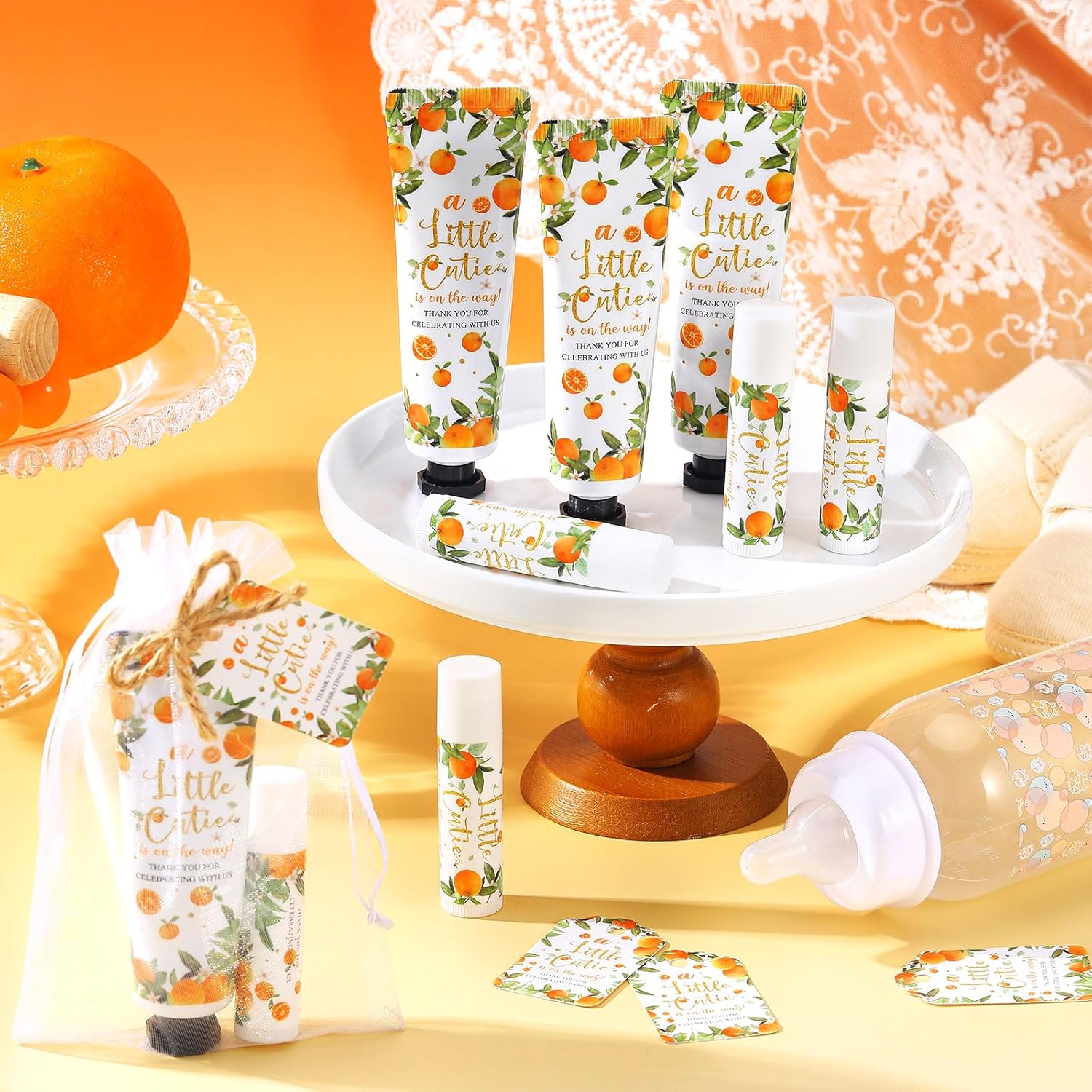 48 Sets 192 Pcs Little Cutie Baby Shower Gifts for Guests Orange Cutie Baby Shower Games Prizes Favors Bulk Include 48 Hand Cream and 48 Lip Balm Guests Gender Reveal Souvenirs Gifts