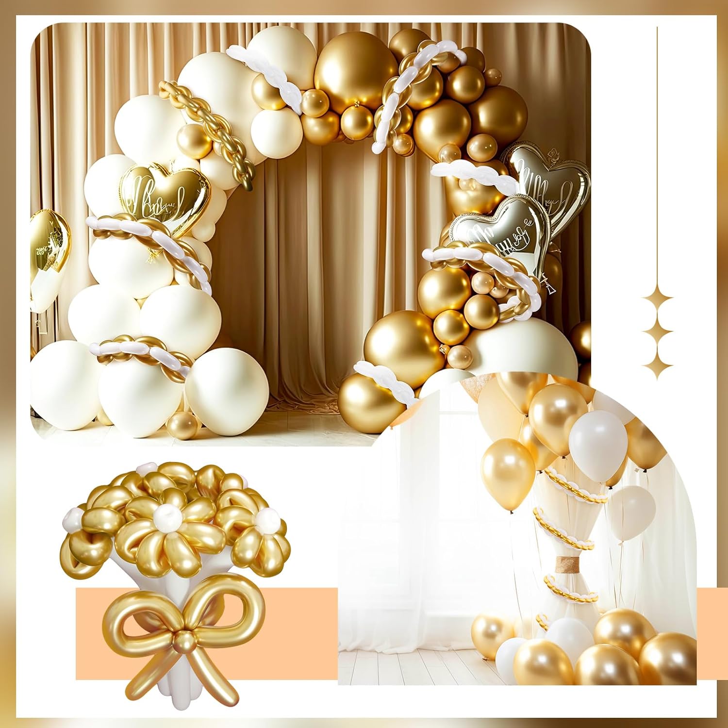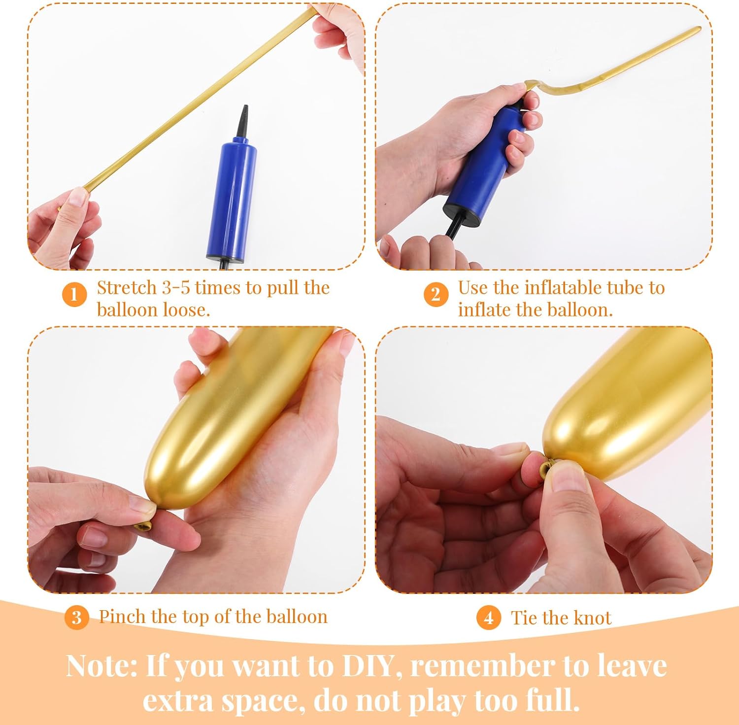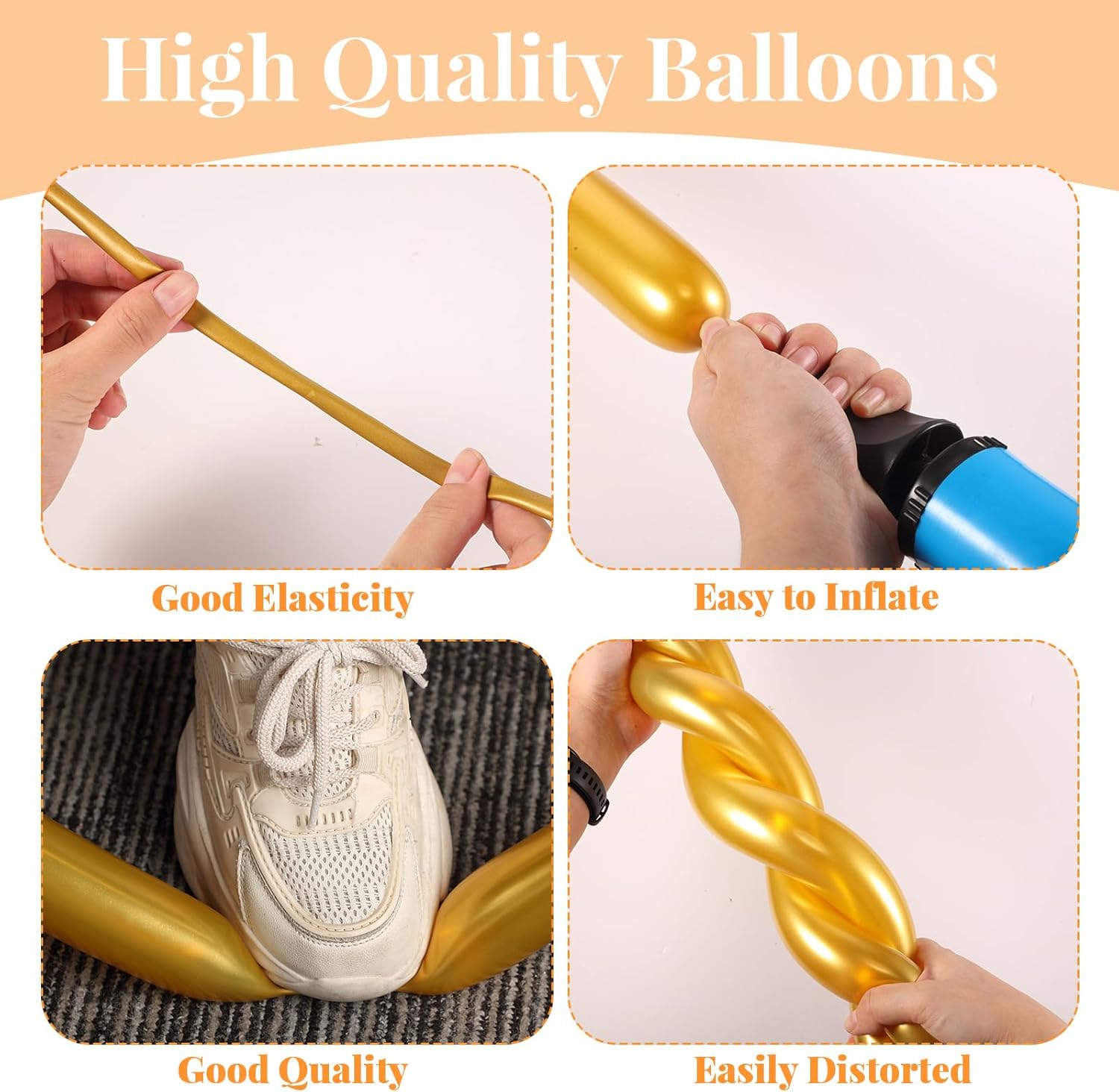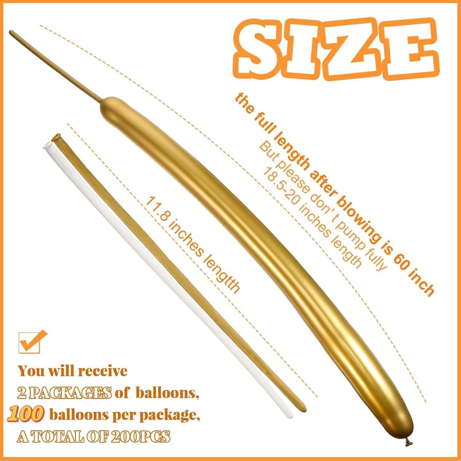- Warm Notes: our white gold long balloons are approx. 11.4 to 11.8 inch in length, after being inflated, will expand to 60 inch in length; Please do not fully inflate, you need to leave some room to avoid blowing up when twisting; You'd better inflate the balloons with a balloon pump