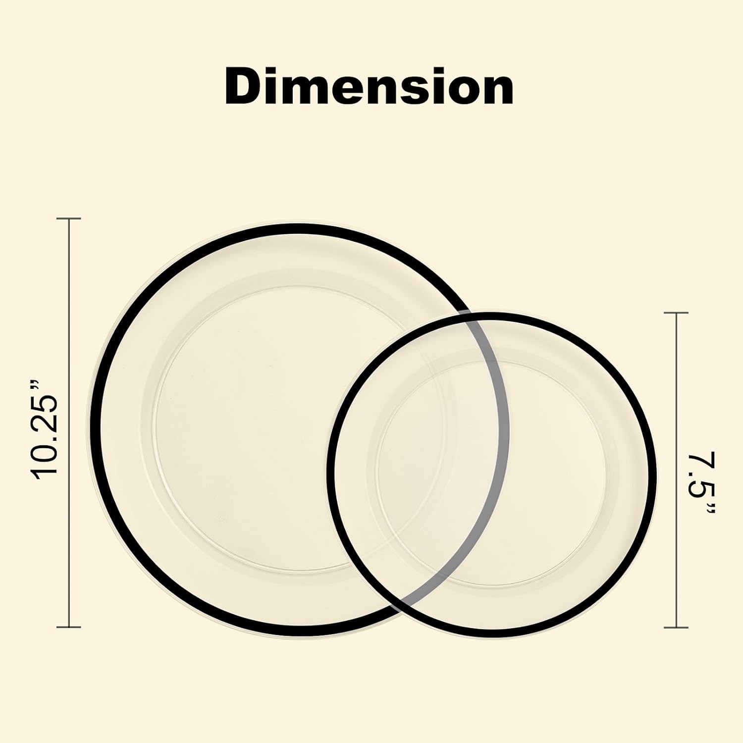 - 50 GUESTS PACK - Black party plate sizes suitable for all events. Including 50 black and clear plastic dinner plates, this set is ideal for substantial staple foods and a variety of meals. Additionally, there are 50 salad dessert plates, perfect for serving cakes and sweets.
