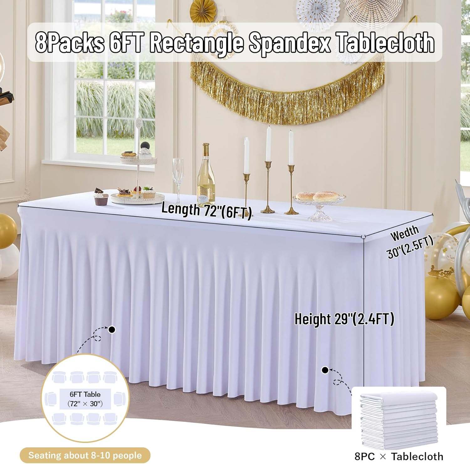 leegleri 8 Pack White Spandex Table Clothes for 6 Foot Rectangle Tables, Wrinkle Free 6ft Fitted Table Cover, Spandex Table Skirt for 6FT Rectangle Tables-for Banquet Weddings Parties