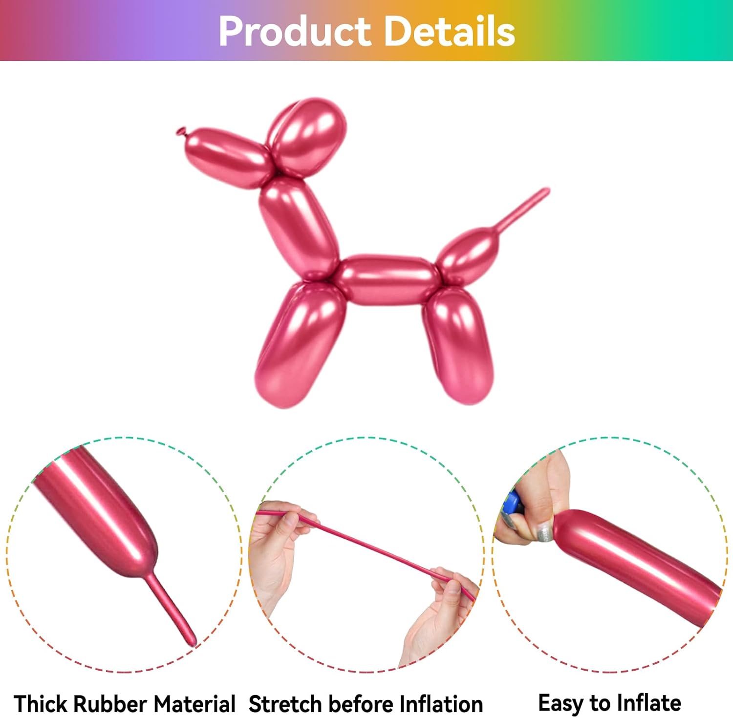 Metallic Multi Long Balloons Premium 260 Twisting Animals Magic Balloons for Birthday Kids Wedding Party Supply 100pcs