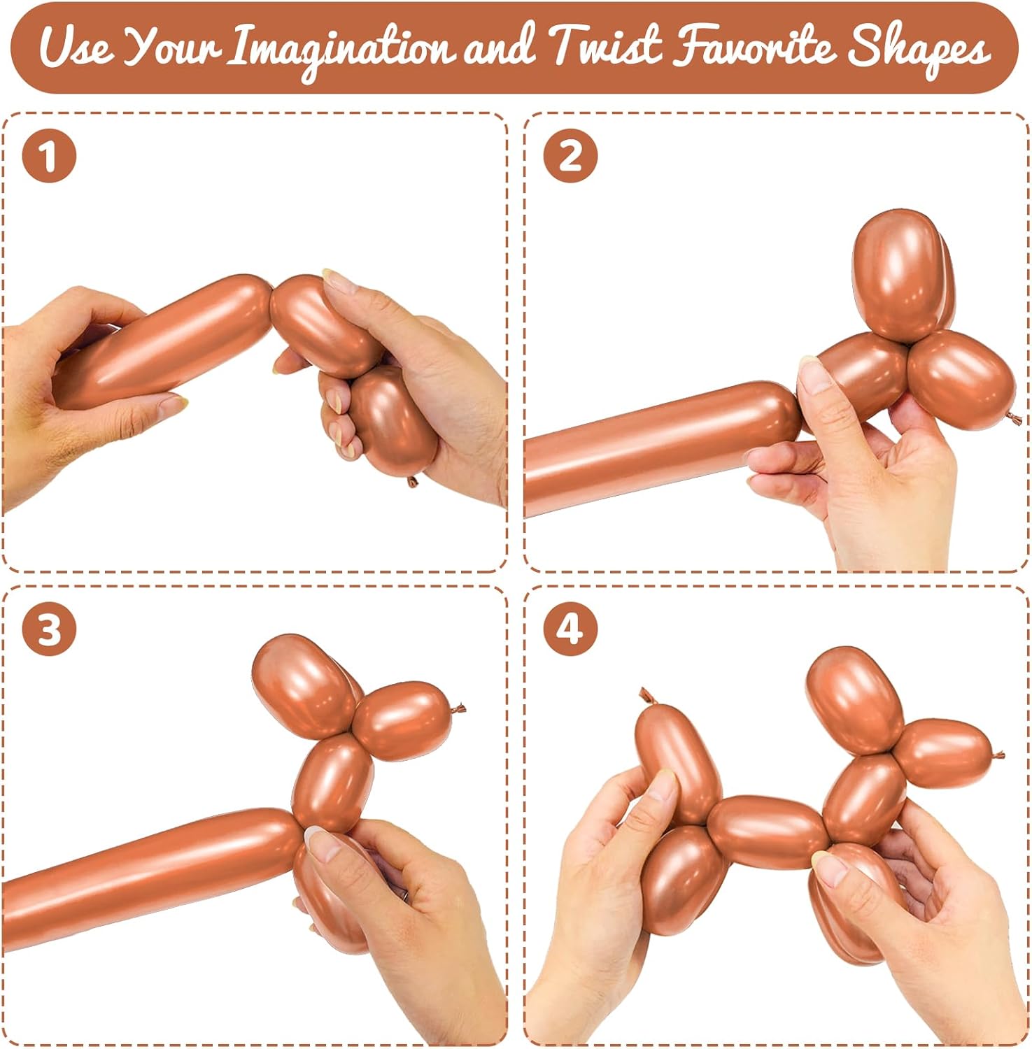 - The long metallic balloons for twisting are made of high-quality latex and are thicker than ordinary 260 balloons. The strong elasticity makes the balloons easy to fold into different shapes and is not easy to blow.