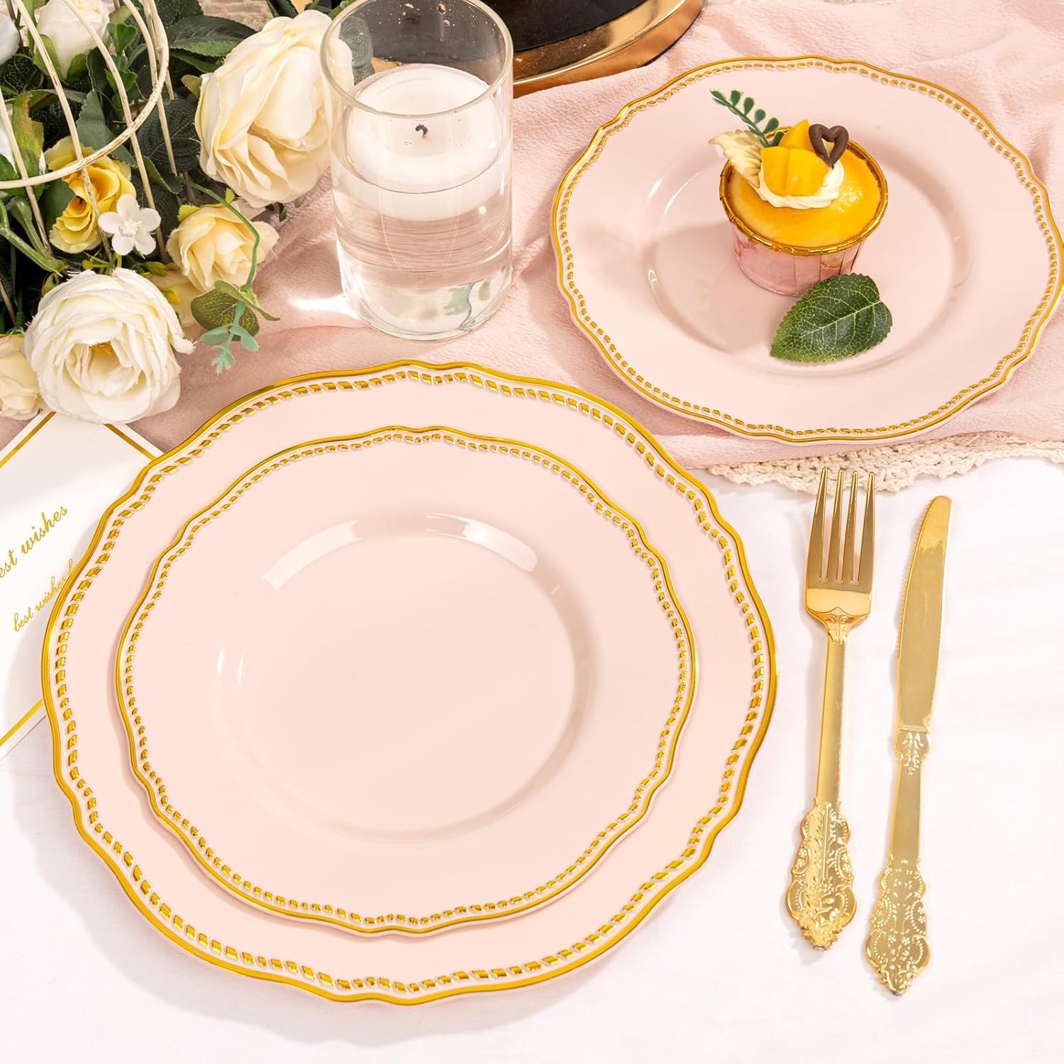 - Perfect For Any Occasions - The pink and gold dessert plates are our latest round shapes design for holiday party, With these pink appetizer plates, you can easily host a party without worrying about the cleanup at the end, just throw them in the trash after use. These plastic party plates are perfect for wedding, Christmas, holidays, Thanksgiving dinners and any other occasions