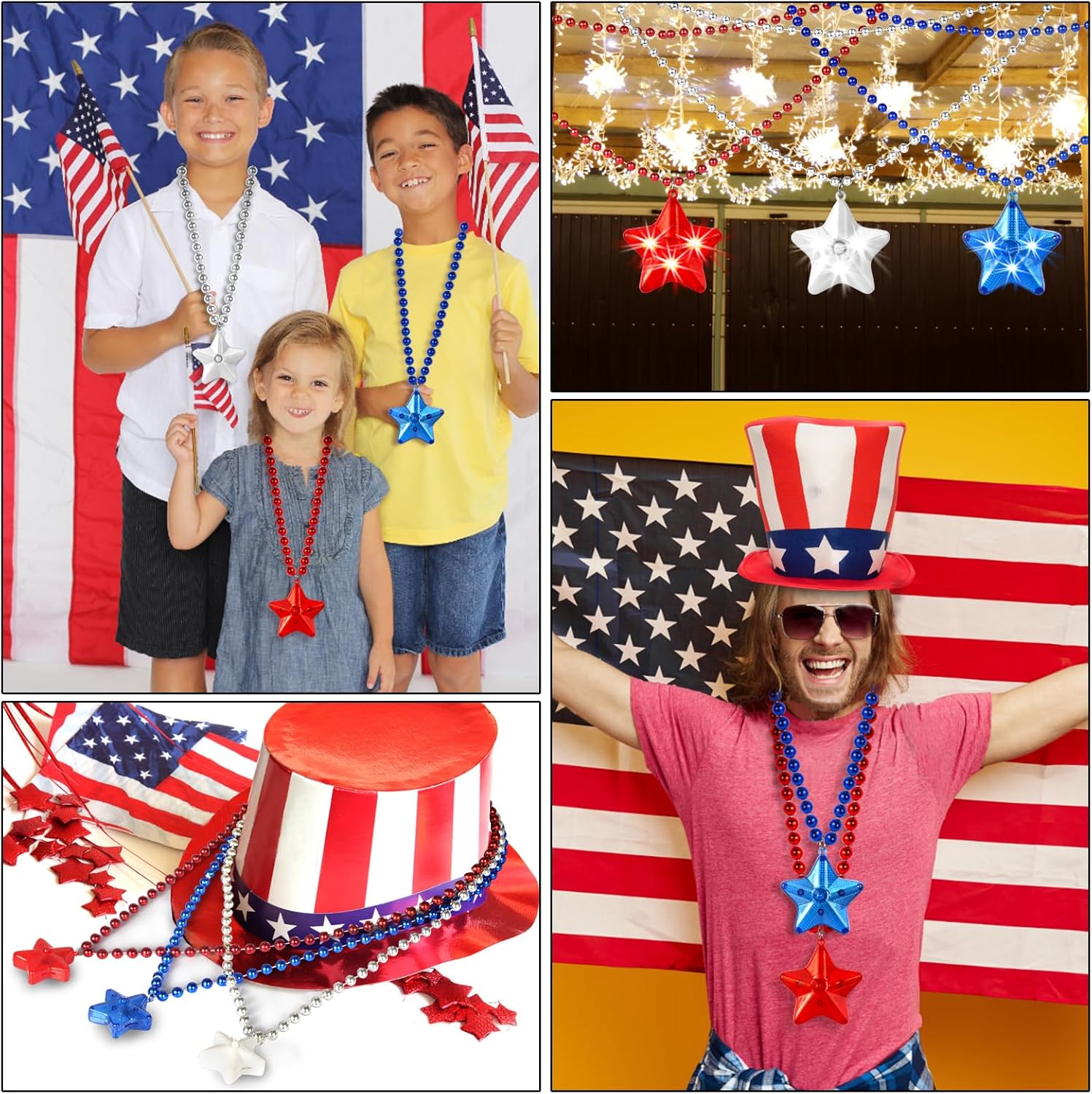 - Design & Size: Made of sturdy and lightweight plastic, can last through the entire celebration and provide a comfortable wear experience. Each bead is 0.3inch in diameter, the whole necklace has a circumference of 32 inches, with individual star dimensions of 1.7 inches. Fits most people