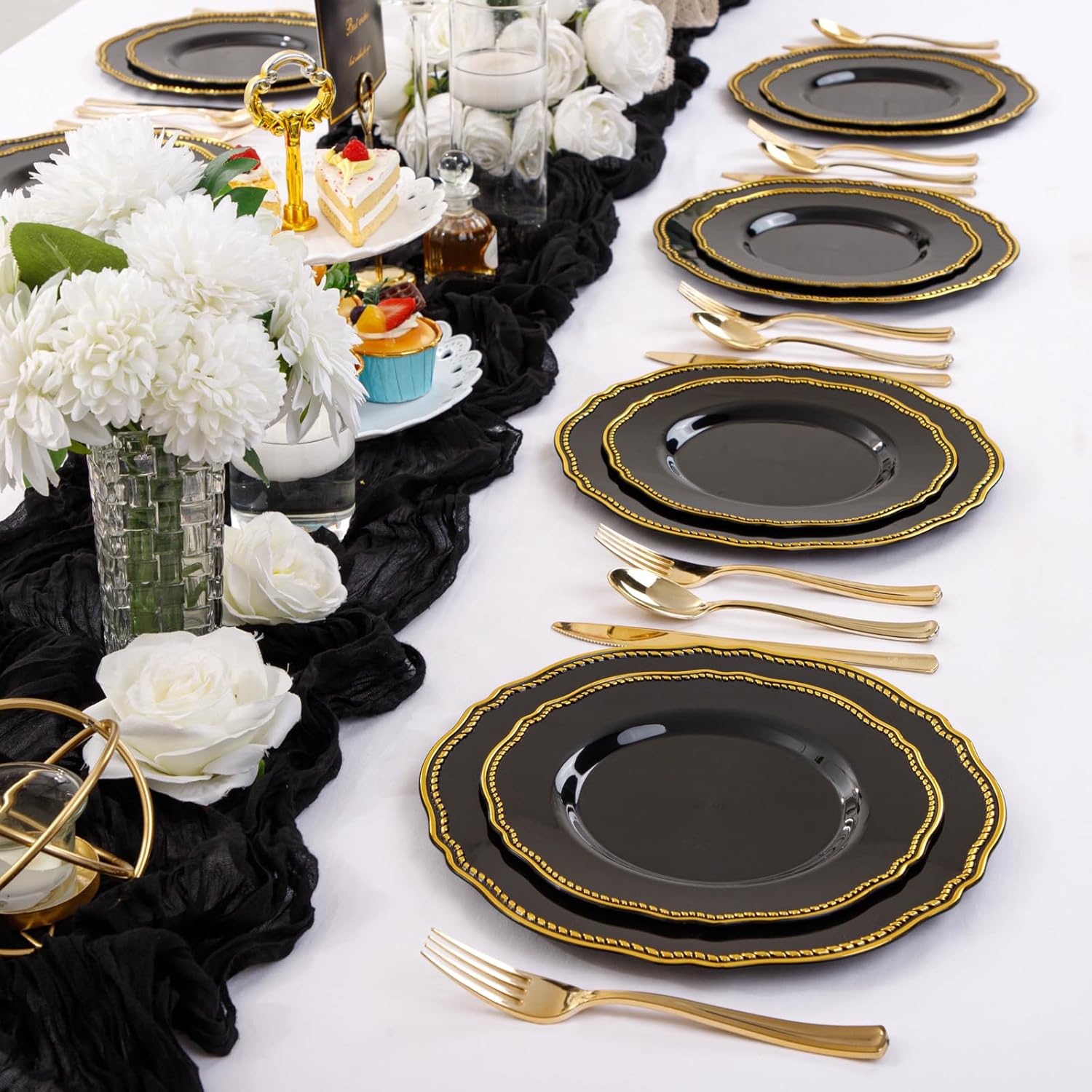 - Perfect For Any Occasions - The black and gold plates are our latest round shapes design for holiday party, With these black disposable party plates, you can easily host a party without worrying about the cleanup at the end, just throw them in the trash after use. These plastic party plates are perfect for wedding,holidays, and any other occasions