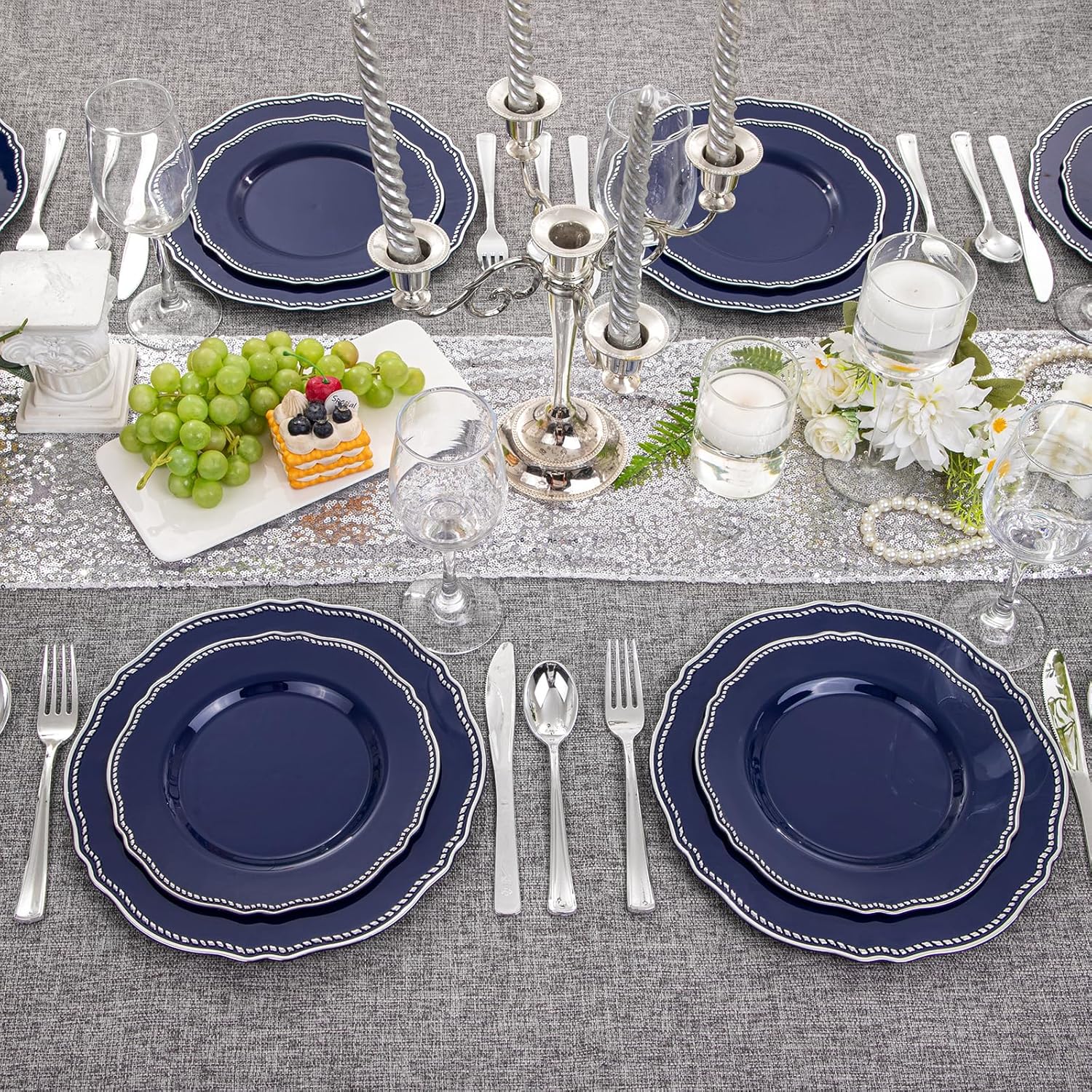 - Elegant Design - These blue plastic plates for party with silver rim look premium have a elegant vintage design. Their equisite appearance can meet the aesthetic requirements of all people, thus the fancy disposable plates can be used for any occasion without a sense of incongruity