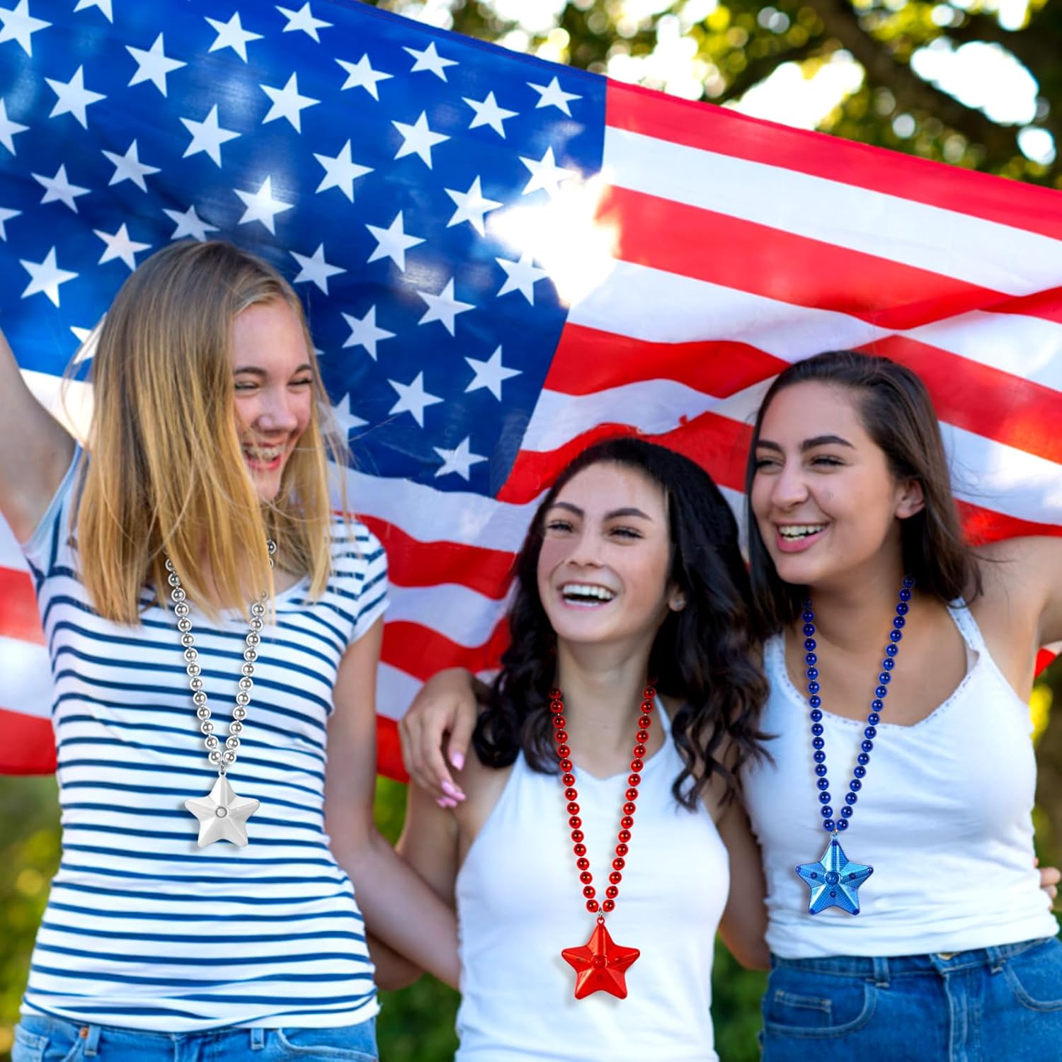 - Design & Size: Made of sturdy and lightweight plastic, can last through the entire celebration and provide a comfortable wear experience. Each bead is 0.3inch in diameter, the whole necklace has a circumference of 32 inches, with individual star dimensions of 1.7 inches. Fits most people