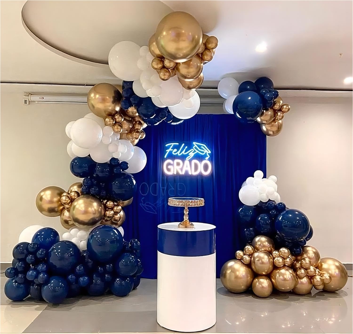 - EASY TO ASSEMBLE: We provide you with 2 tools that assist you to make blue and gold balloon garland arch more easily. Pull the balloon knots into the ballon strip holes, Glue dots hold the balloon firmly on the balloon strip hole. It is recommended to inflate them with an electric balloon pump, saving you a lot of time to enjoy the party