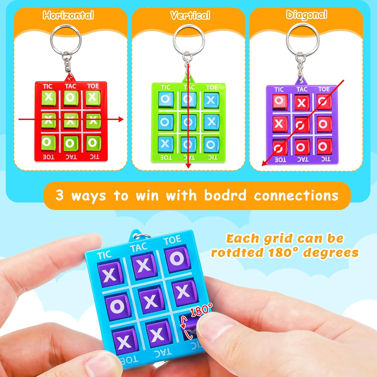 - Premium Quality Kids Party Favors】Our tic tac toys are child-safe, non-toxic, BPA-free and meet US toy standards. The colorful tic-tac-toe keychains are made of high quality plastic, and the keychain itself is made of metal, which is sturdy and durable, not easy to break or deform, can be used for a long time. Awesome party favors for kids 8-12, prizes for elementary students, kids party favors goodie bags,end of year student gifts from teacher.