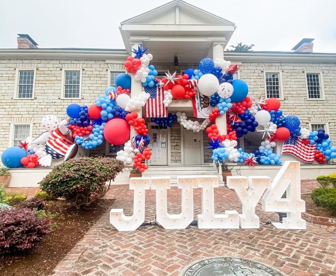 - TIPS: There may be some smell of latex when the red and blue white balloon arch kit is just taken out, you can dry it in a cool and ventilated place. To avoid dust dimming the balloons, you can set up the balloons shortly before the event or use Balloon Shine Spray to keep them shiny