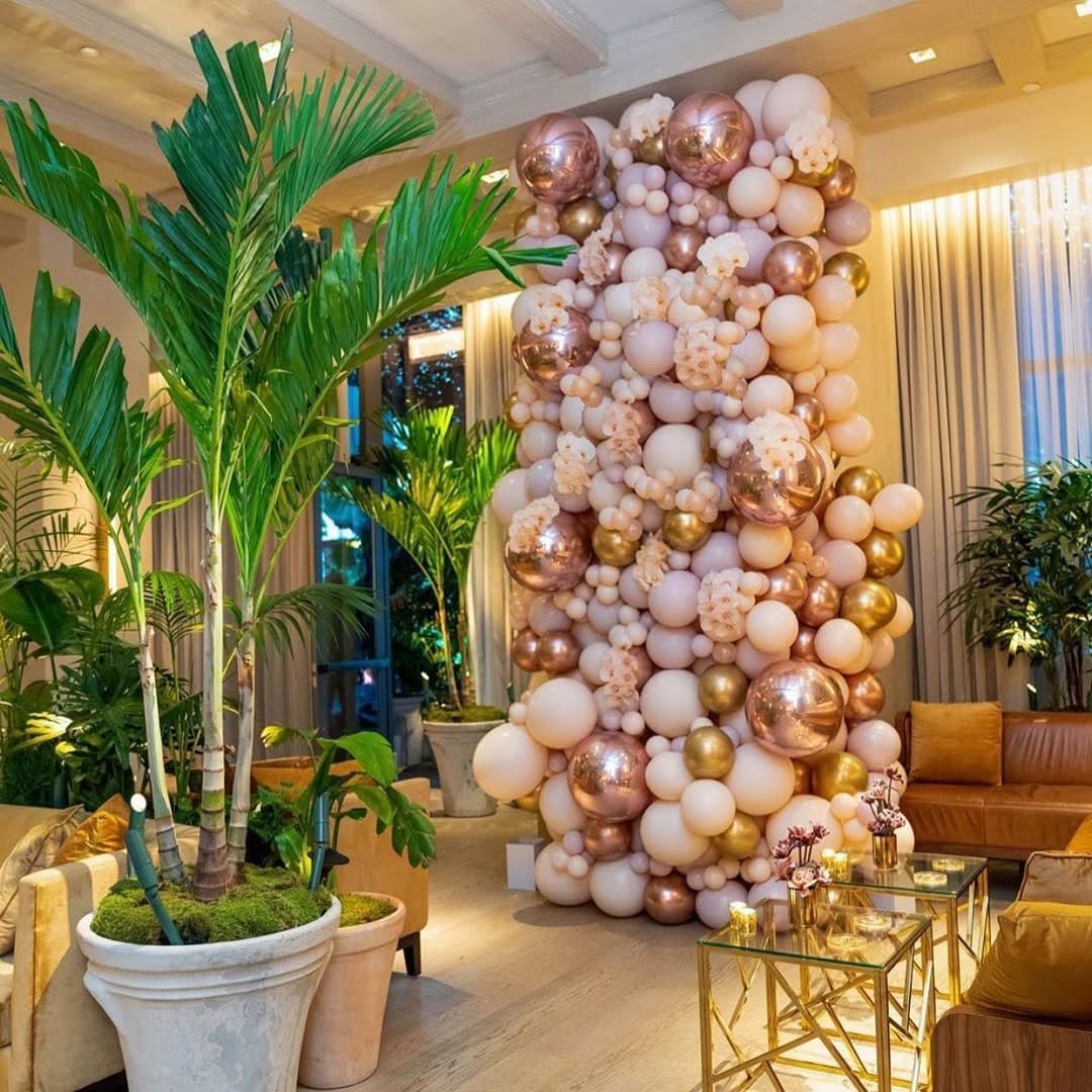 - TIPS: There may be some smell of latex when the rose gold balloon arch kit is just taken out, you can dry it in a cool and ventilated place. To avoid dust dimming the balloons, you can set up the balloons shortly before the event or use Balloon Shine Spray to keep them shiny