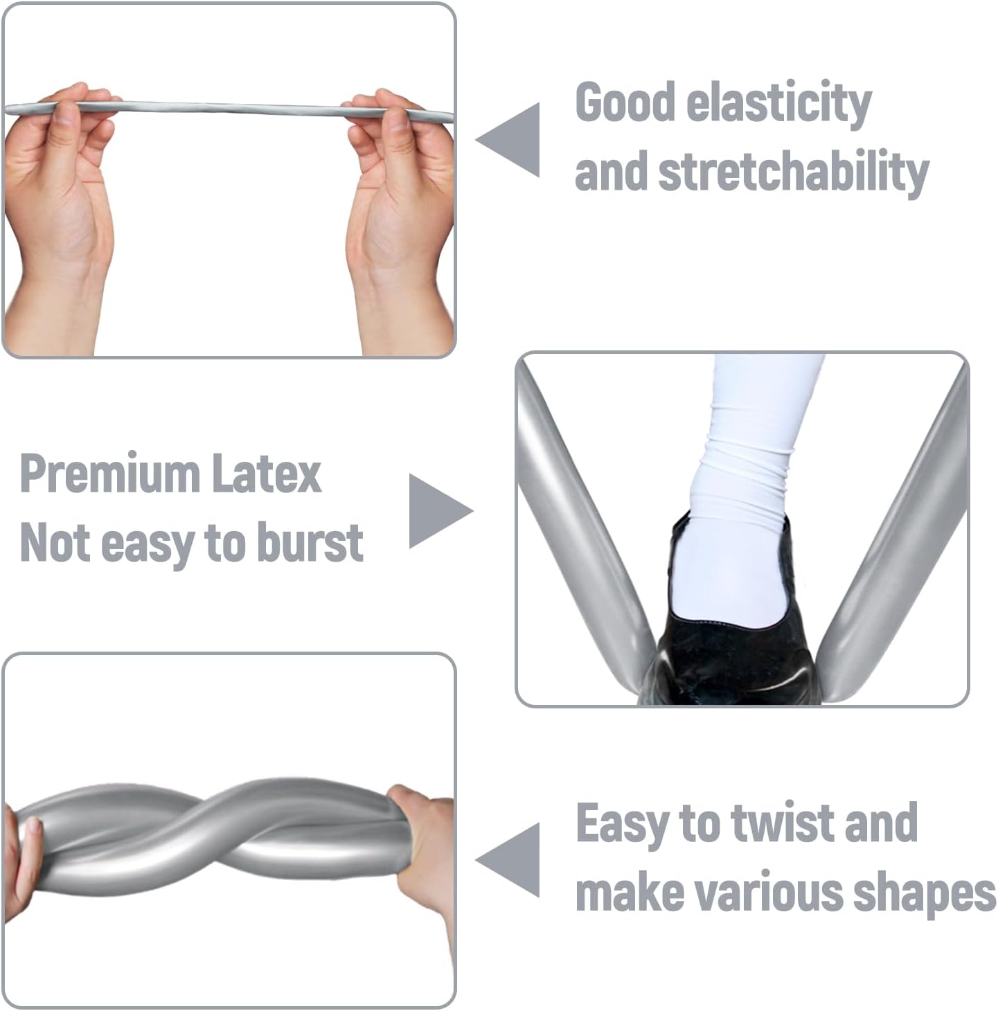 - Wide application: Our metallic silver chrome animal balloons twisting balloons can be used anywhere anytime. balloon animal kit is suitable for various occasions like parties, school activity, birthday, wedding, clowns props, anniversary, festival,holiday decorations, Baby Shower,magic show,Kids' Party, Preschool ,Wedding Engagement, Easter.