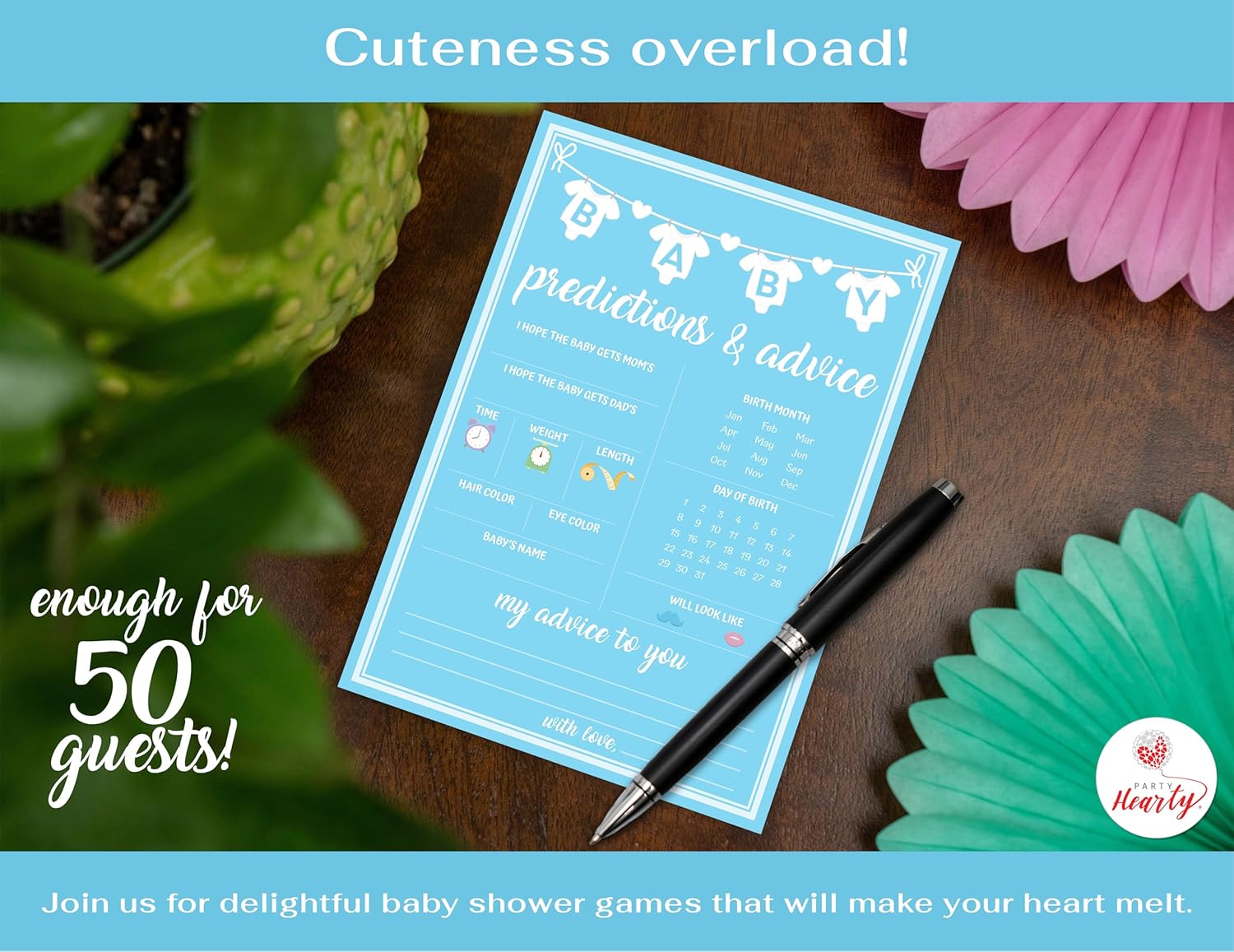 Party Hearty Baby Shower Games for Boy, 50 pcs Predictions & Advice Game, Fun Activity Cards, Baby Shower Ideas
