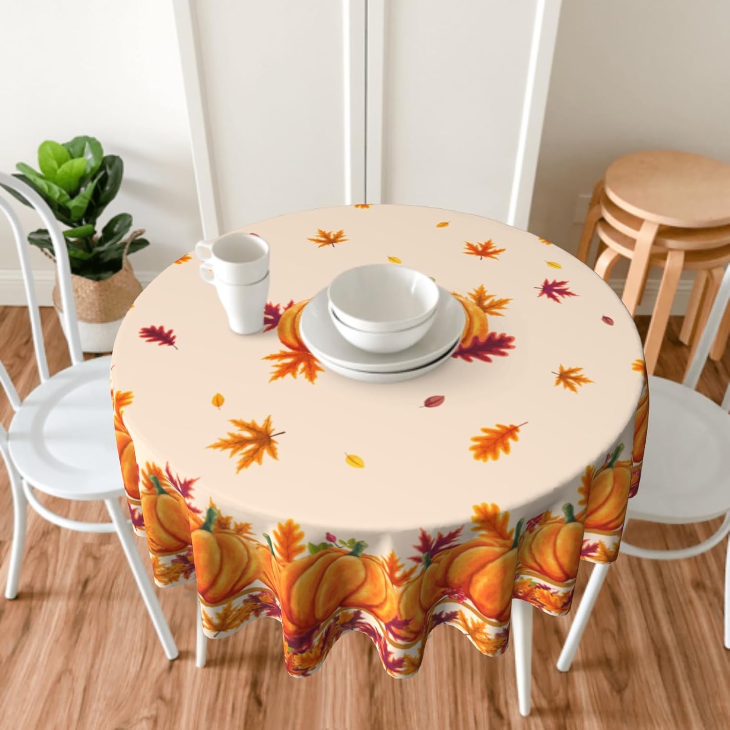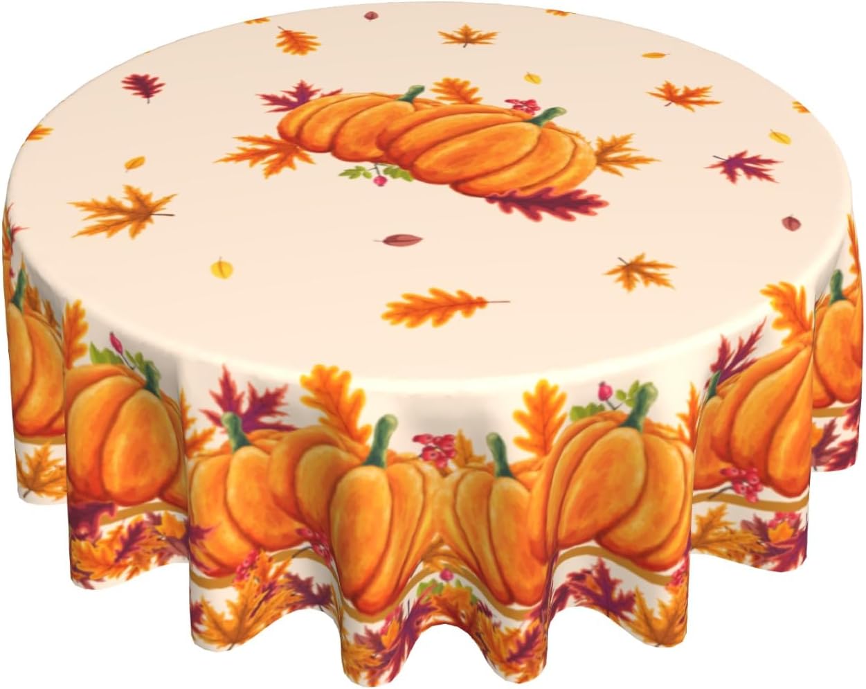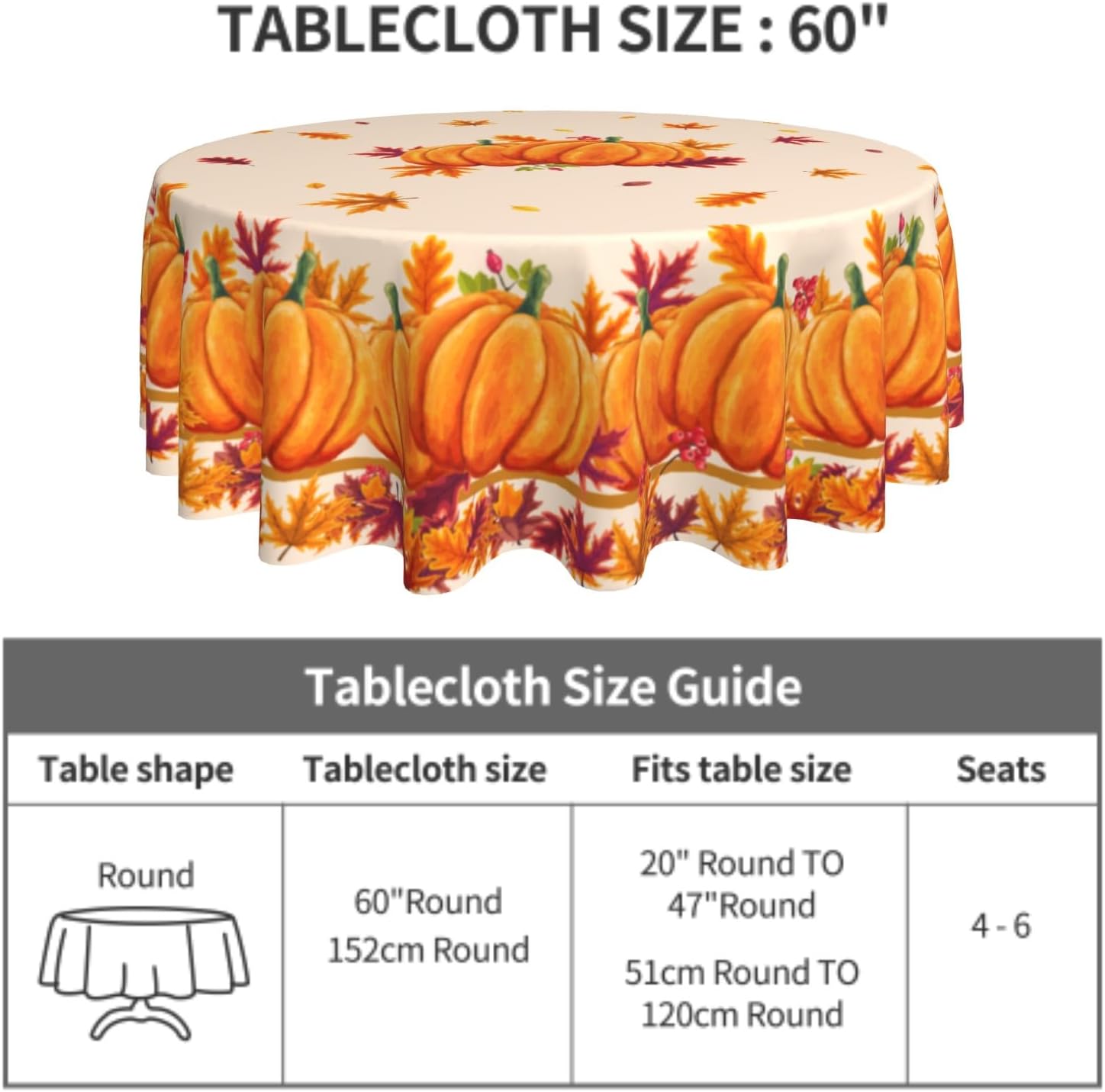 - UNIQUE DESIGN: The autumn table cloth measures 60in/152cm in diamemter, which is suitable for most table size. Round table cloth can make you experience a positive energy of family reunion and bring you a sweet holiday atmosphere in daily life.