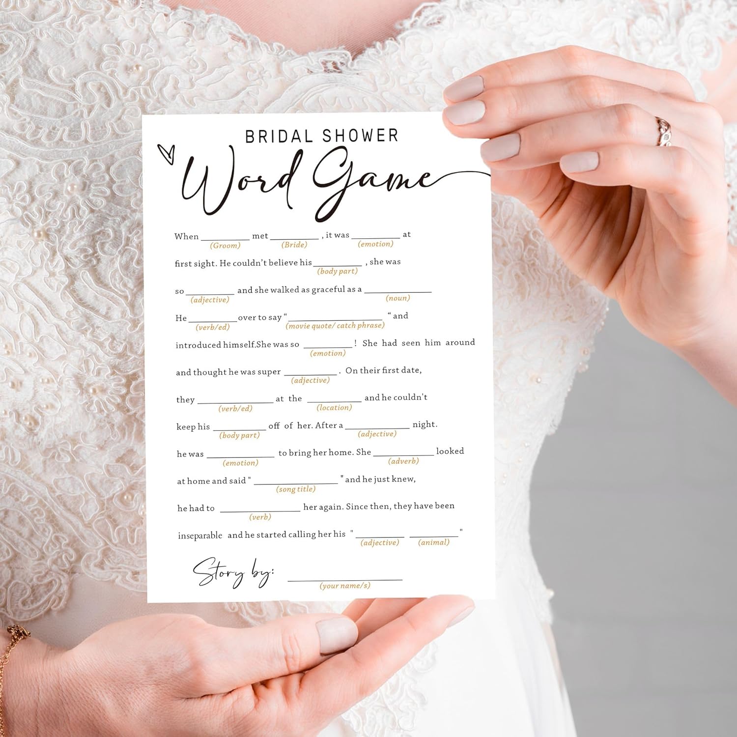 Wedding Shower Games Cards, Bridal Shower Word Game, Bridal Shower Games 25 Guests, Engagement Party Wedding Games for Guests, Minimalist White Wedding Party Supplies - A17