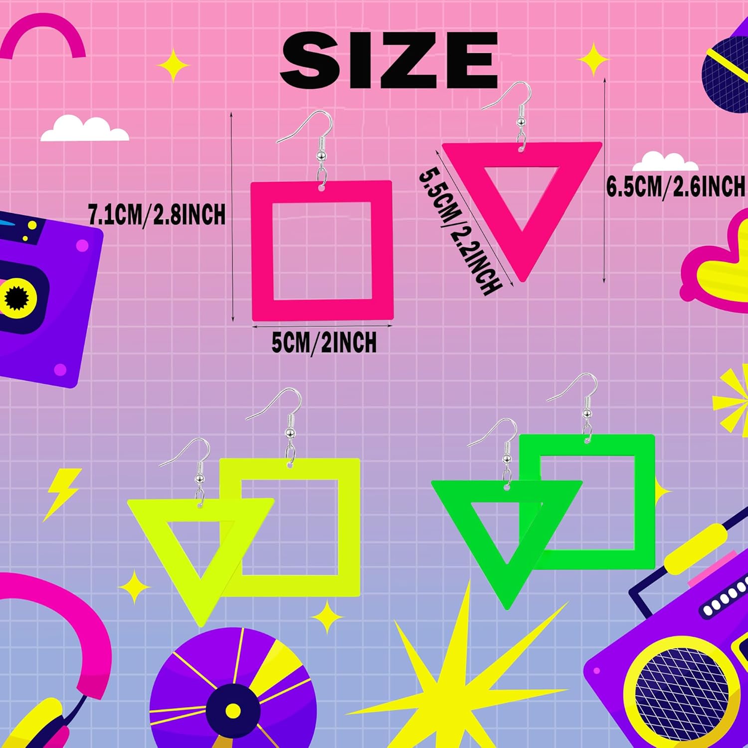 - Elevate Your Party: Transform your look from ordinary to extraordinary with 80s 90s earrings. Be the center of attention as you dance the night away, with these charming accessories that perfectly complement glow-in-the-dark themes and parties, creating a mesmerizing visual impact