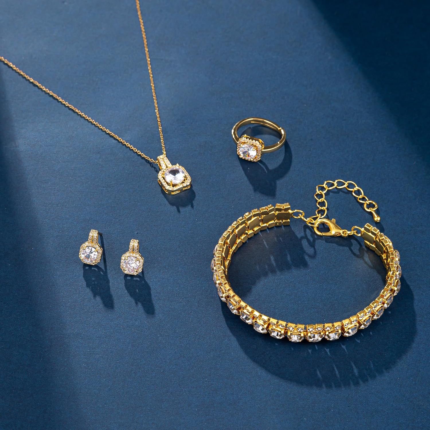 - ♥ Occasions♥: Gold bride necklace earrings bracelet ring jewelry set for brides bridesmaids is suitable for Wedding / Engagement / Valentines-day / Anniversary / Prom / Dinner party / Birthday party, any occasion you want to be more charming.