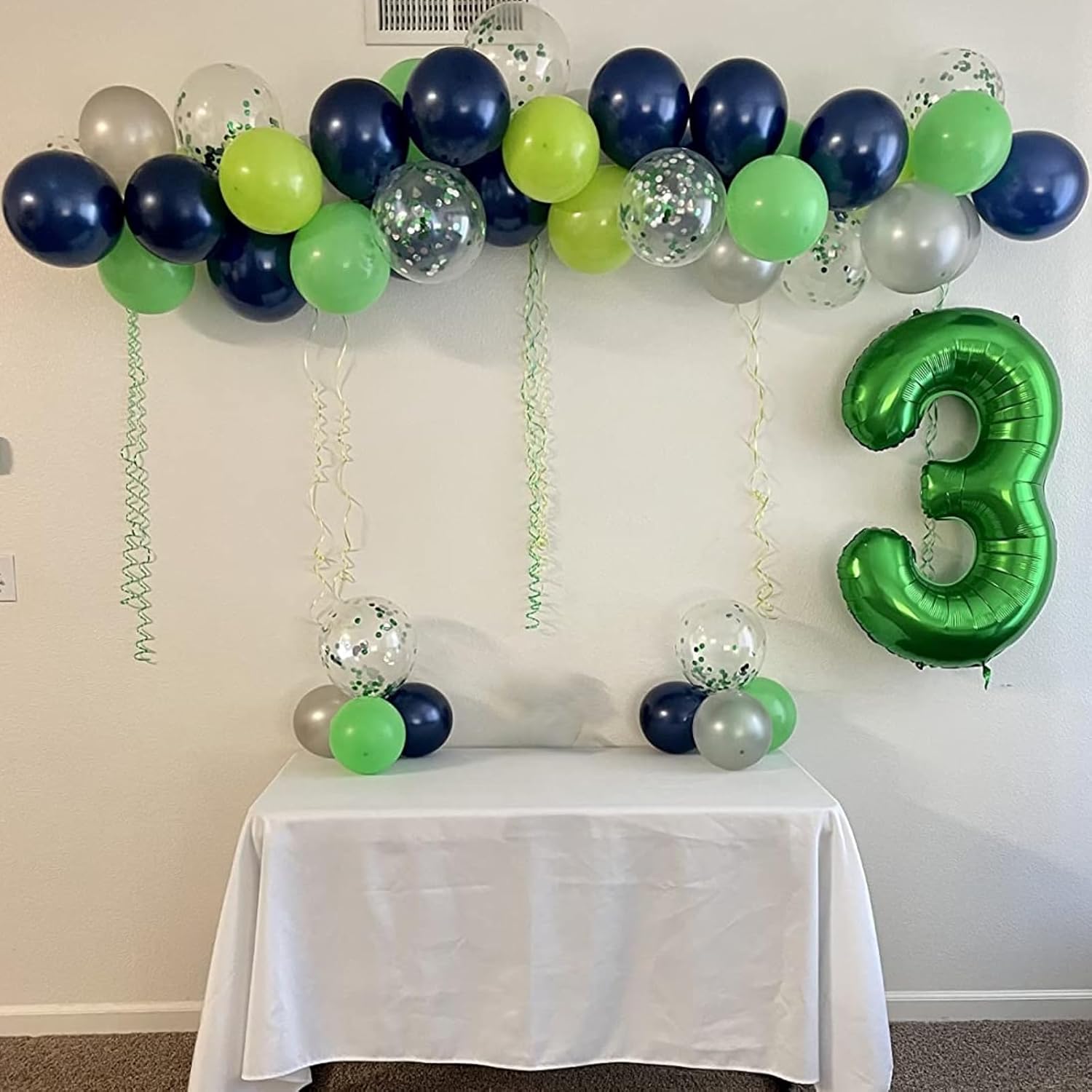 - What's Included: Enhance your party with our latex balloon Kit! This set features 5pcs navy blue balloons, 5pcs fruit green balloons, 5pcs dark green balloons, 5pcs macaron teal balloons, 5pcs white balloons, 5pcs green confetti balloons, 5pcs blue confetti balloons, all sized at 12 inches. Plus, we've included 1 balloon ribbon to perfect for your safari theme decor.
