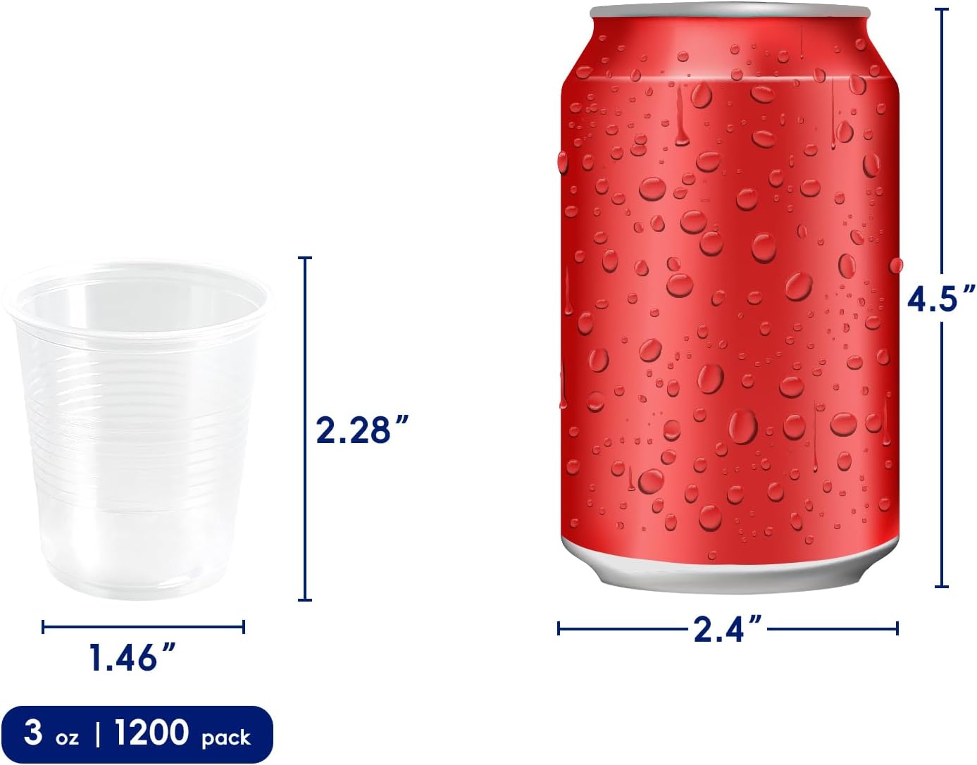 - Value Pack: You will get 1200 packs of 3 Ounces clear plastic cups.In this way, the bathroom cups are not easily deformed. Bulk pack quantity is enough for diverse daily use
