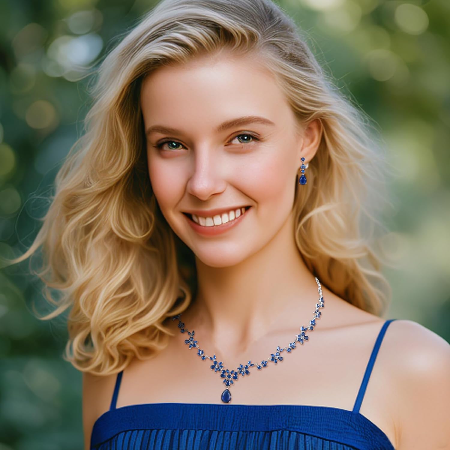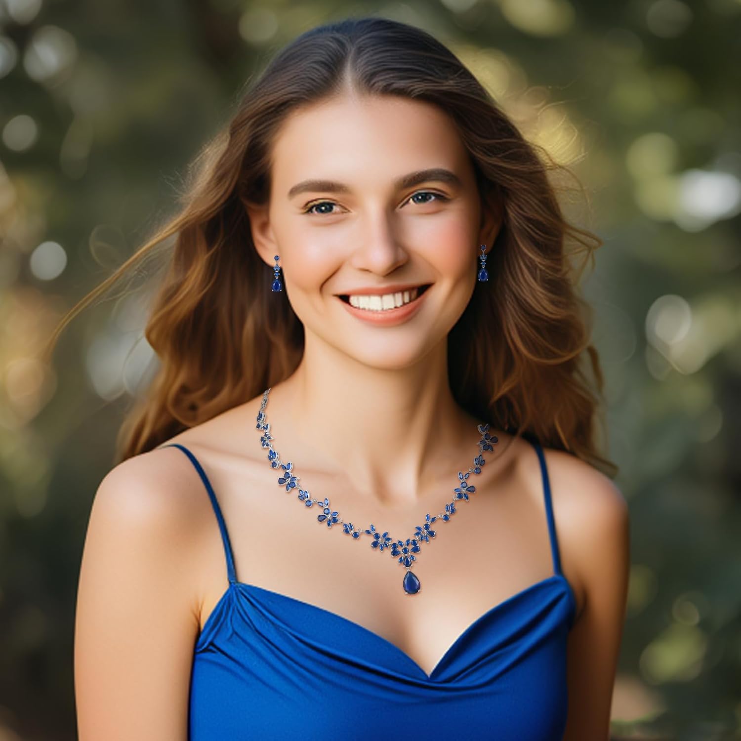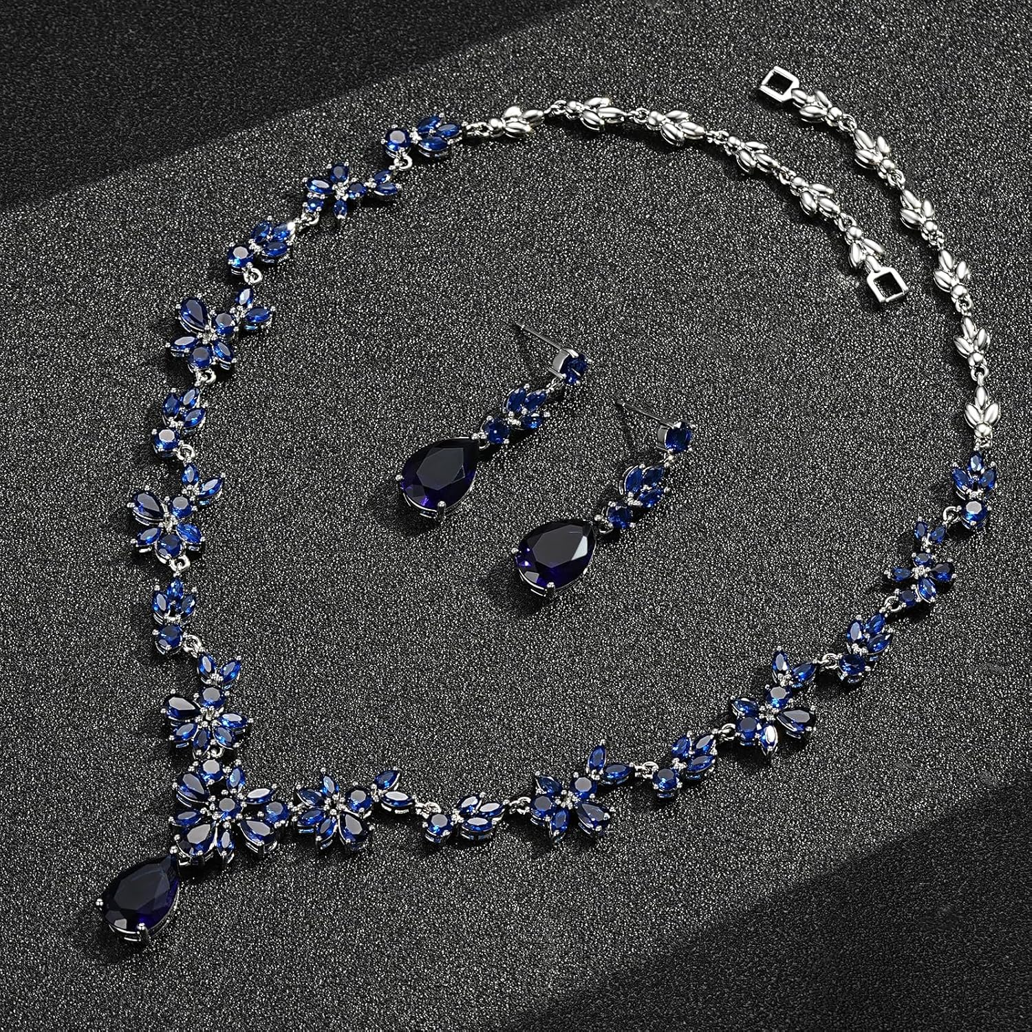 - High Quality Material : This Women's Jewelry Set is Square-designed are White gold plated, shinny blue Leaf Cluster Flower Crysta, nickel free and lead free. These hypoallergenic stud earrings and necklace for women are highly polished to maintain the colour for a long time.
