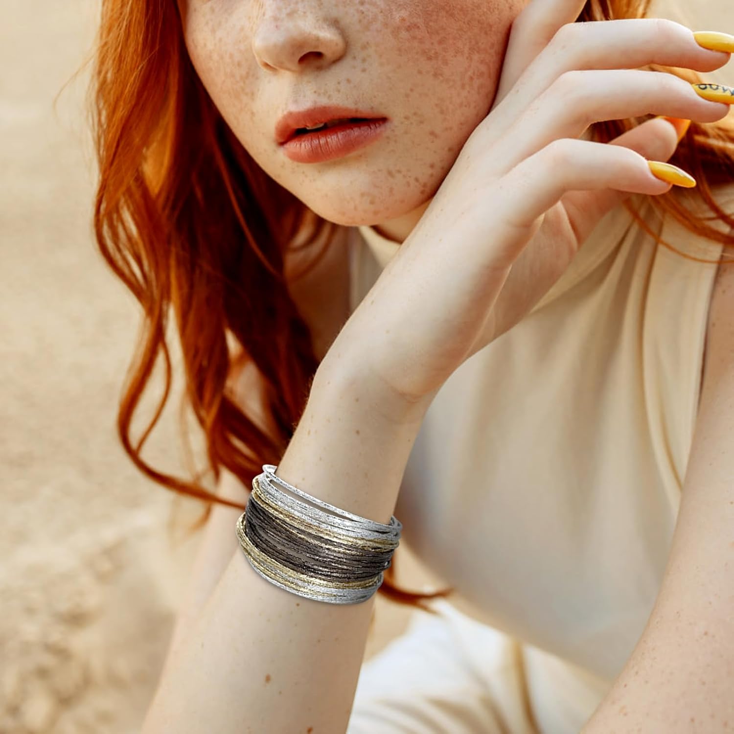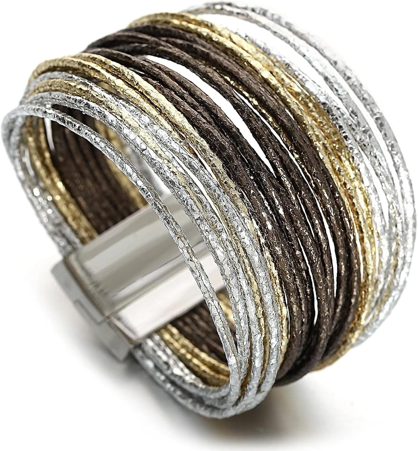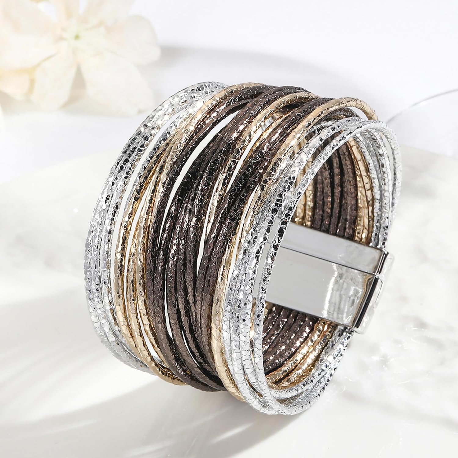 - 【UNIQUE DESIGN】 Our gorgeous and attractive leather bracelet features multiple strands of leather cords combination in different texture. You can wear our wrap bracelet on different occasions, no matter shopping, working, party, dance or dating, this bracelet will attract a lot of attention, you'll get more compliments.
