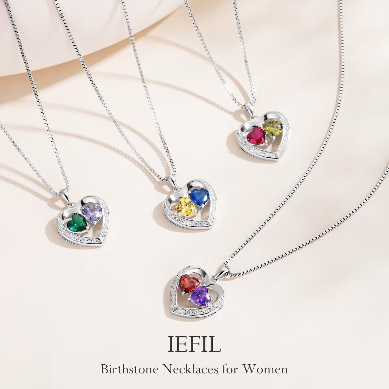 Iefil Christmas Gifts for Wife - 925 Sterling Silver Birthstone Necklace, Anniversary Birthday Gifts for Women, Stocking Stuffers for Women Wife Mom Daughter