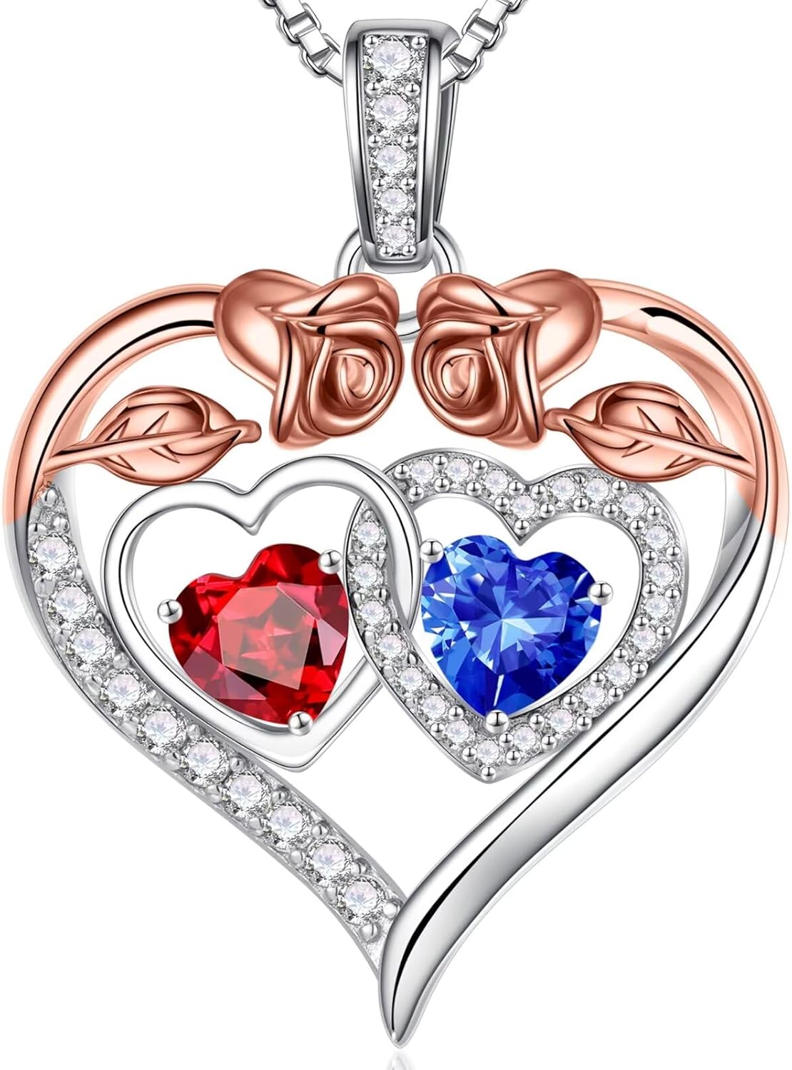 - GIFTS FOR WOMEN: The double heart necklace represents the two of you forever tightly held together. This unique rose heart birthstone necklace is the perfect gift for women, mother, grandmas, aunts, sisters, friends, wives.