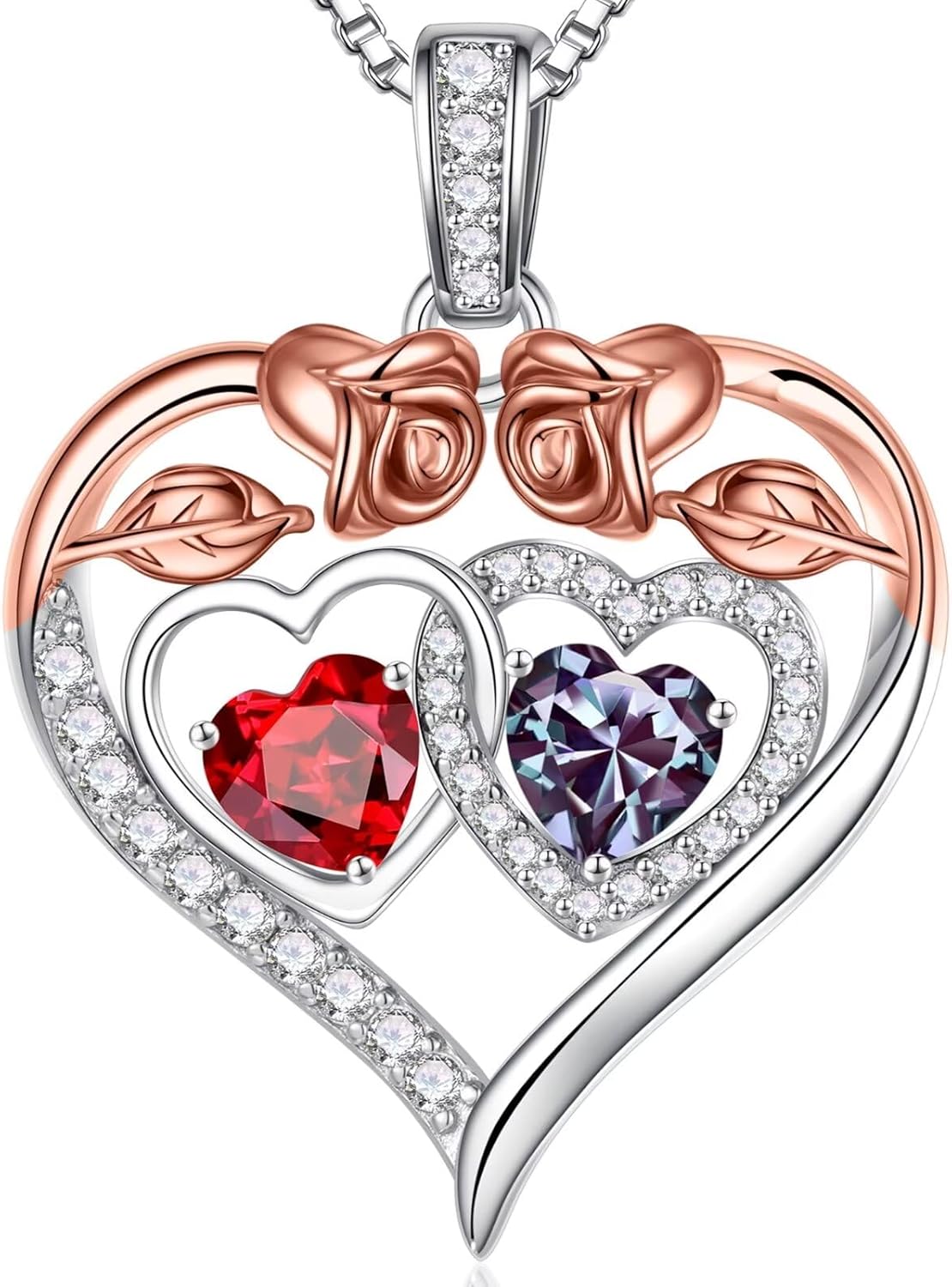 • GIFTS FOR WOMEN: The double heart necklace represents the two of you forever tightly held together. This unique rose heart birthstone necklace is the perfect gift for women, mother, grandmas, aunts, sisters, friends, wives.