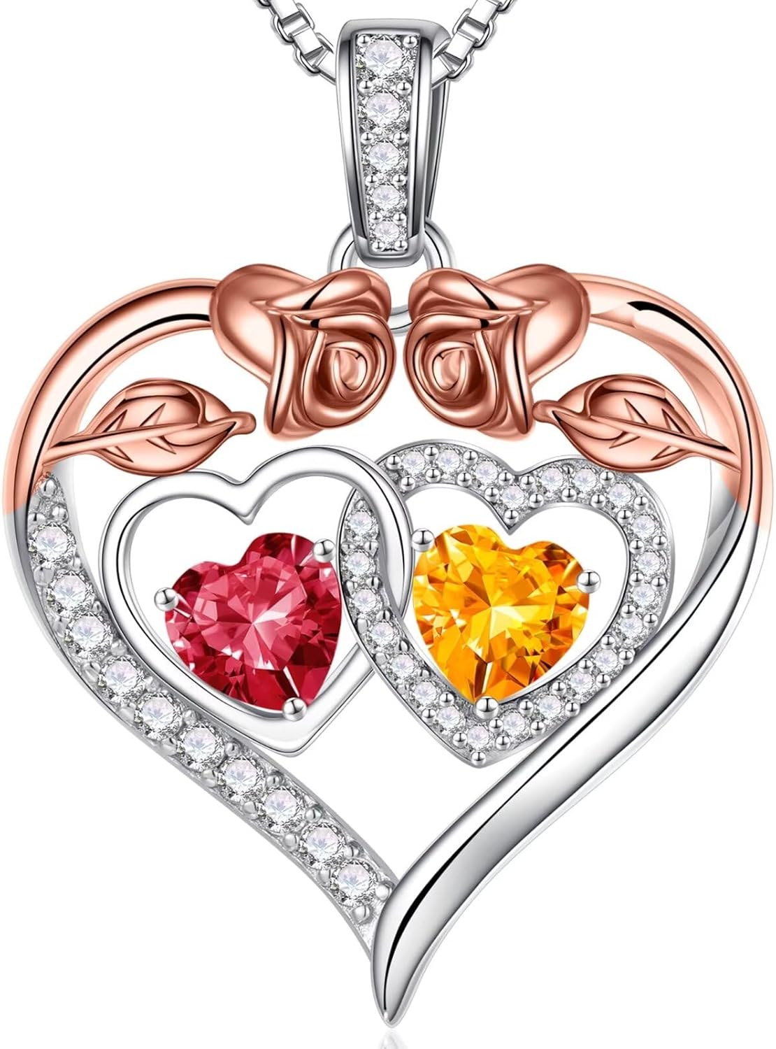 - GIFTS FOR WOMEN: The double heart necklace represents the two of you forever tightly held together. This unique rose heart birthstone necklace is the perfect gift for women, mother, grandmas, aunts, sisters, friends, wives.