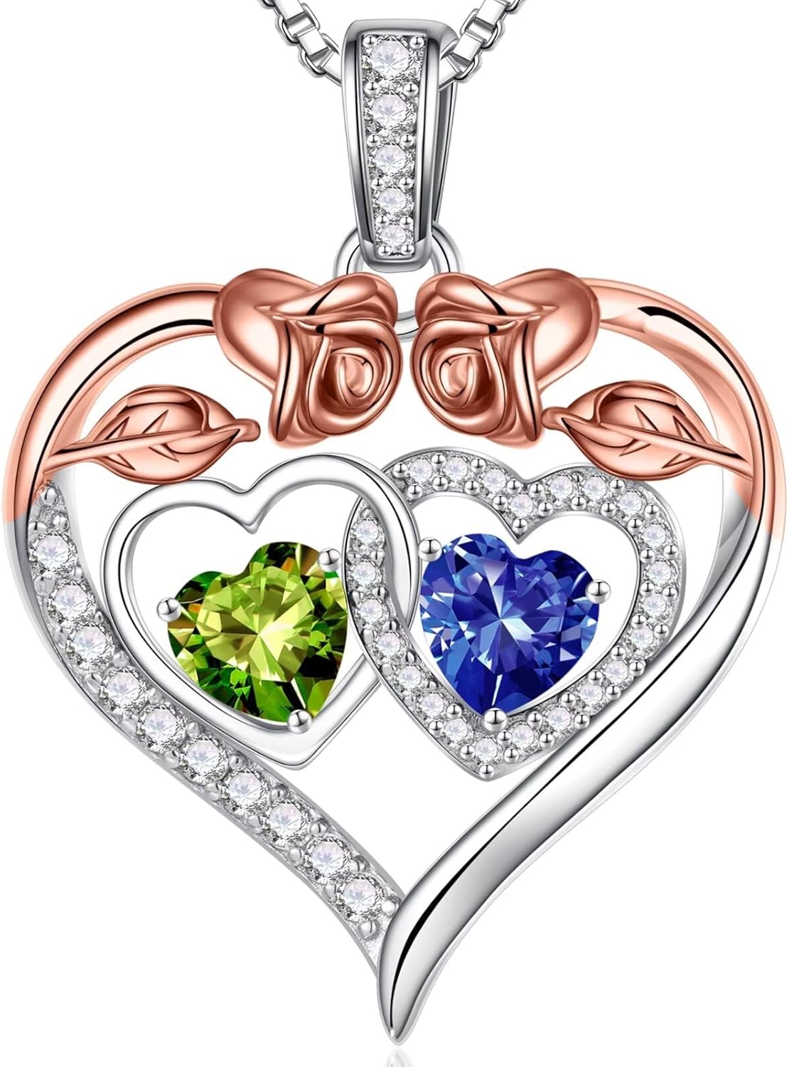 - GIFTS FOR WOMEN: The double heart necklace represents the two of you forever tightly held together. This unique rose heart birthstone necklace is the perfect gift for women, mother, grandmas, aunts, sisters, friends, wives.