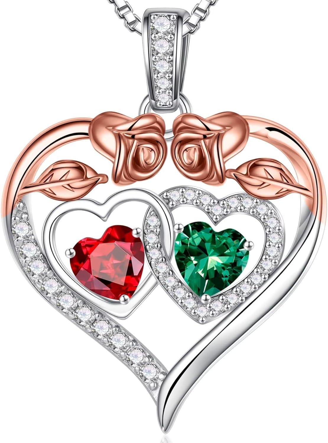 - GIFTS FOR WOMEN: The double heart necklace represents the two of you forever tightly held together. This unique rose heart birthstone necklace is the perfect gift for women, mother, grandmas, aunts, sisters, friends, wives.
