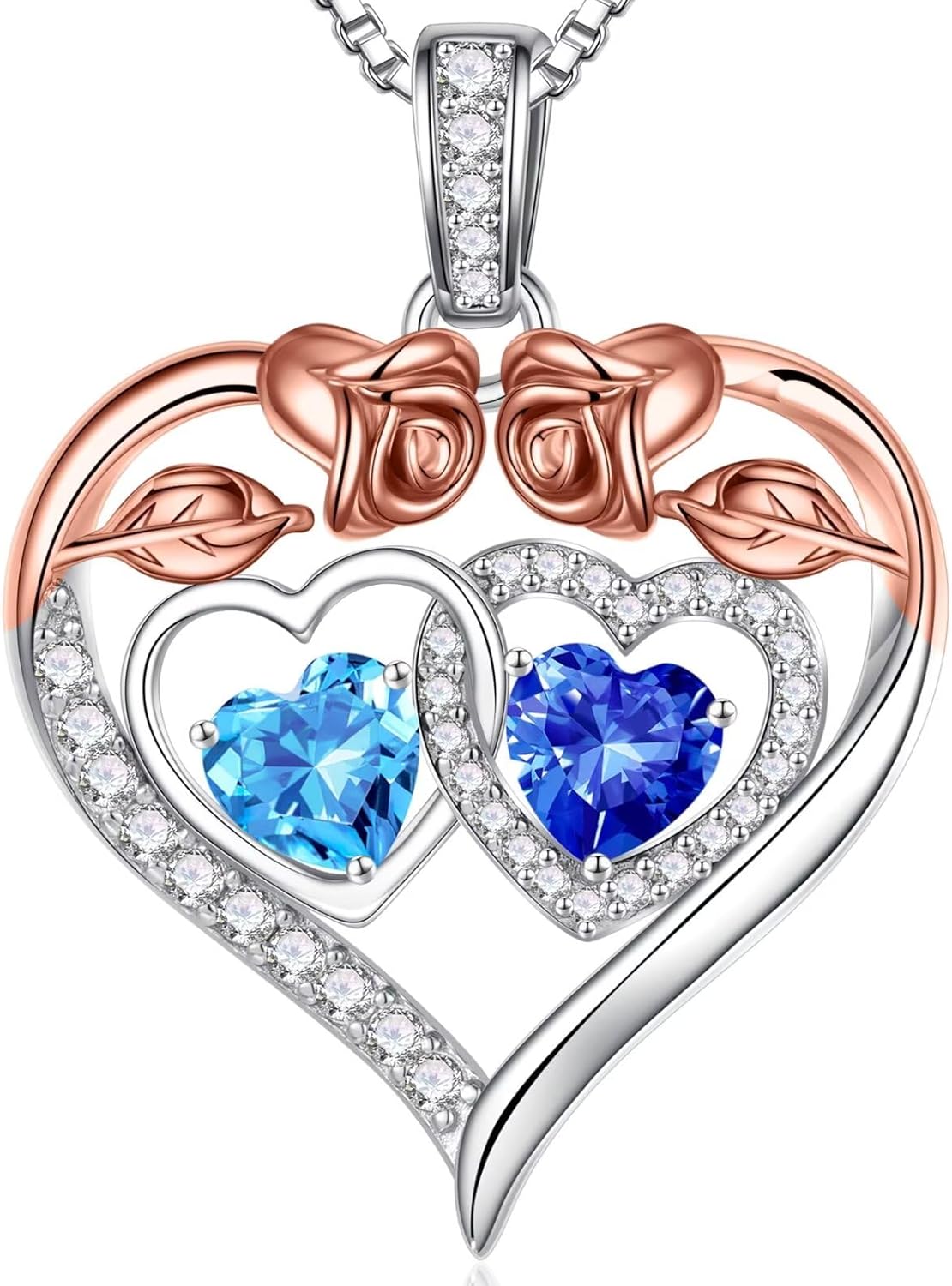 - GIFTS FOR WOMEN: The double heart necklace represents the two of you forever tightly held together. This unique rose heart birthstone necklace is the perfect gift for women, mother, grandmas, aunts, sisters, friends, wives.