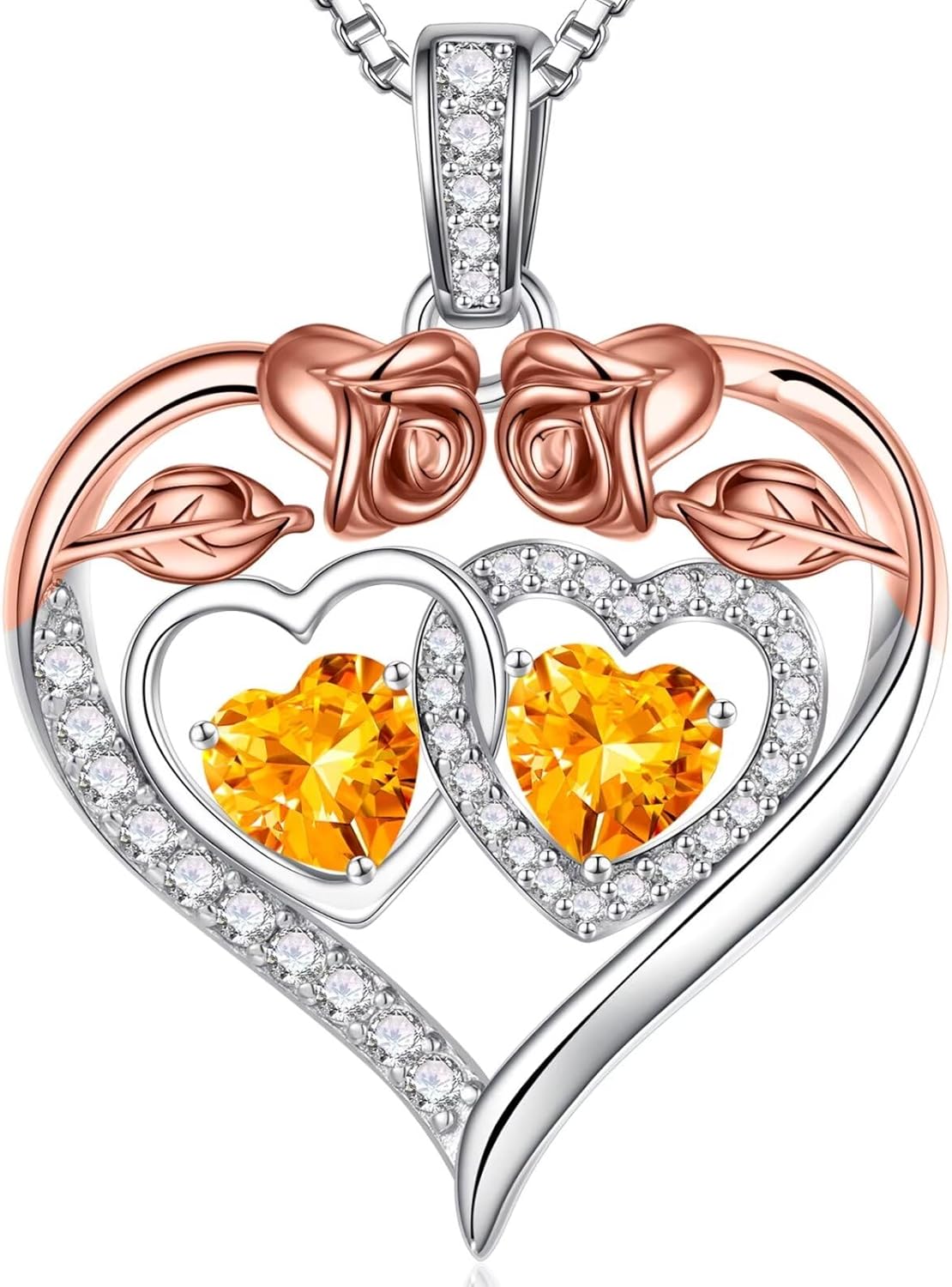 Iefil Double Birthstone Necklace Gifts for Wife Girlfriend Her Women, Birthstone Jewelry Gemstone Valentines Birthday Gifts for Her Women Wife Mom Grandma