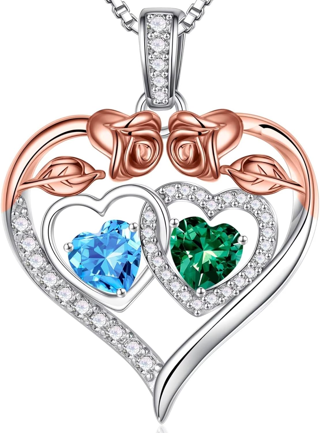 - GIFTS FOR WOMEN: The double heart necklace represents the two of you forever tightly held together. This unique rose heart birthstone necklace is the perfect gift for women, mother, grandmas, aunts, sisters, friends, wives.