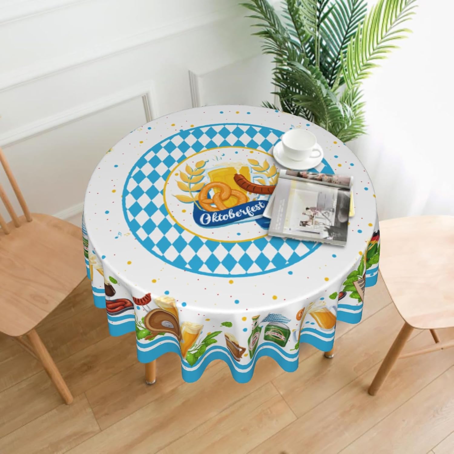 - UNIQUE DESIGN: The Oktoberfest beer table cloth measures 60in/152cm in diamemter, which is suitable for most table size. Round table cloth can make you experience a positive energy of family reunion and bring you a sweet holiday atmosphere in daily life.