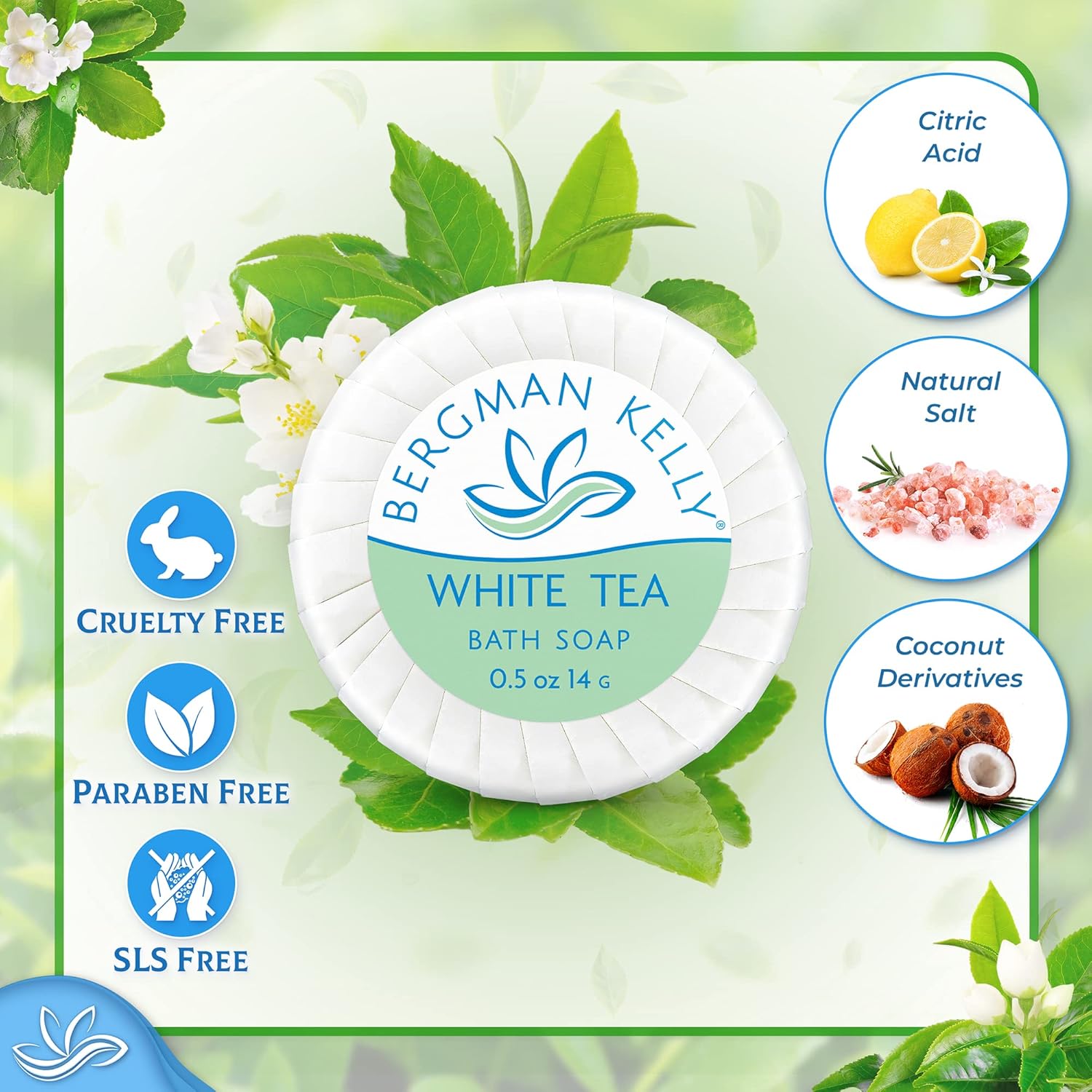 BERGMAN KELLY - Hotel Soap Bars - White Tea, 0.5 oz, 200 PK - Travel Size Luxury Bulk Amenities Bar Soap, Mini Individually Wrapped Round Soap - Small Toiletries for Airbnb, Motel, Guest Bathroom