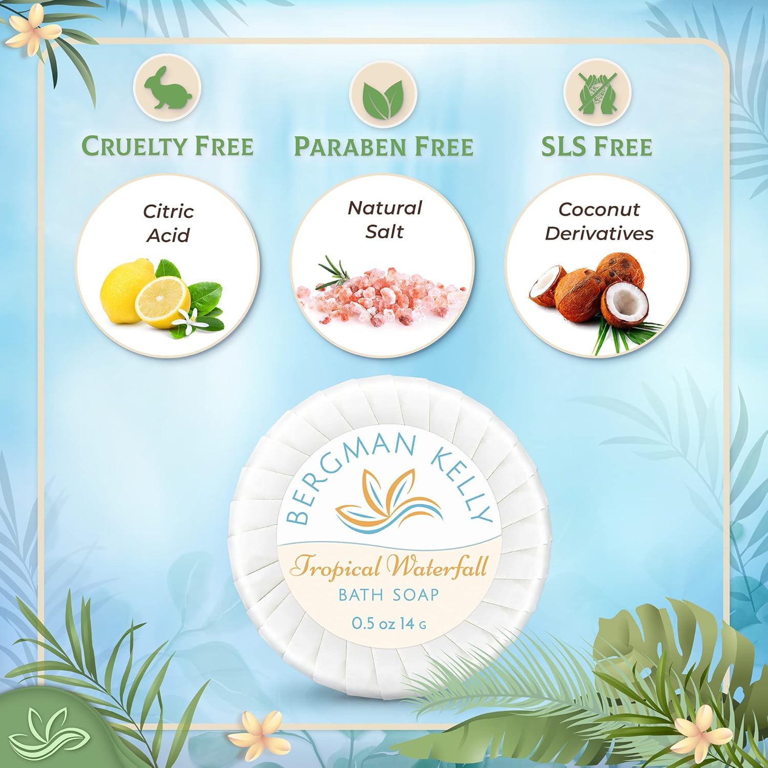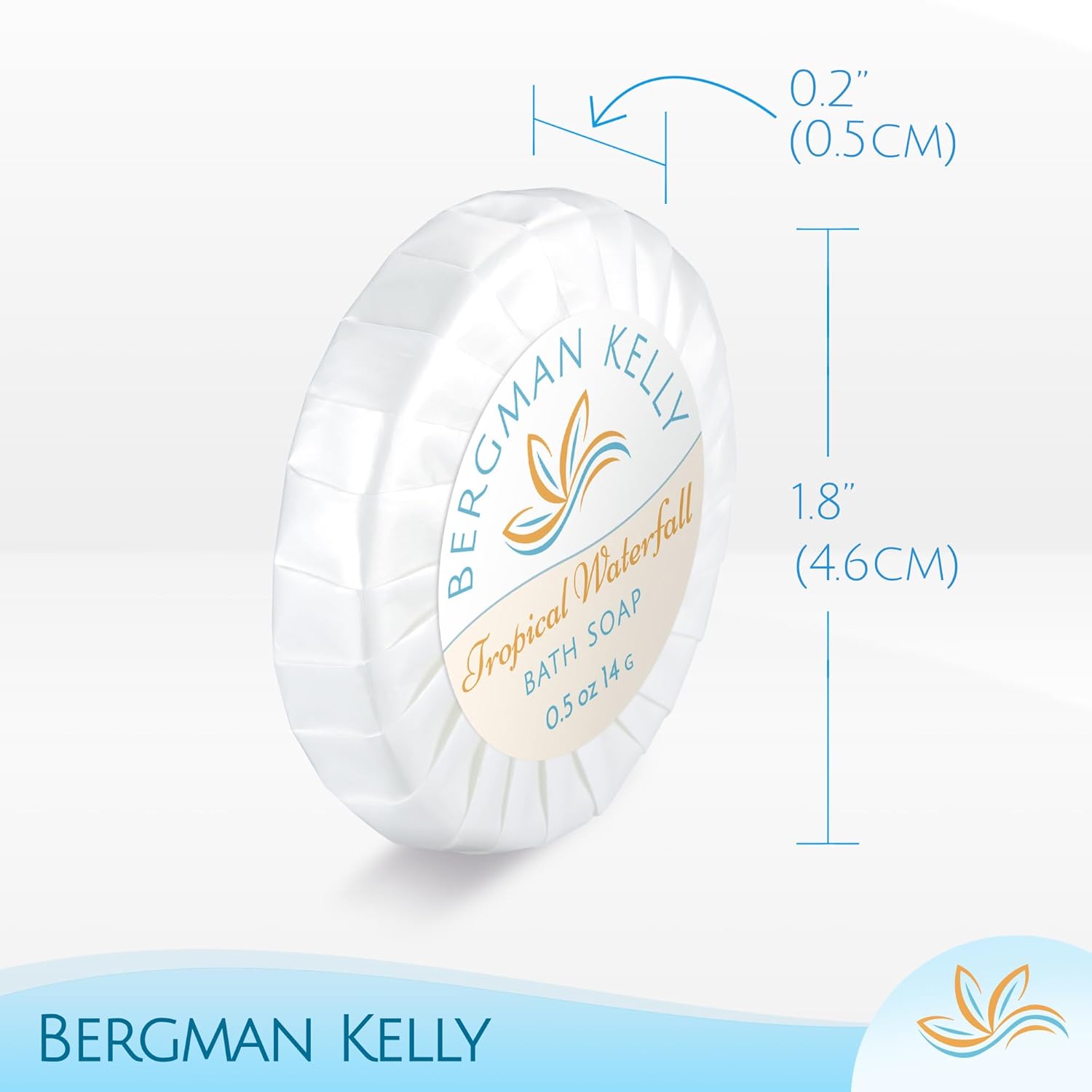 BERGMAN KELLY - Hotel Soap Bars in Bulk - Tropical Waterfall, 0.5 oz, 200 PK - Small Individually Wrapped Round Soap - Travel Size Mini Toiletries for Airbnb, Motel, Guest Bathroom