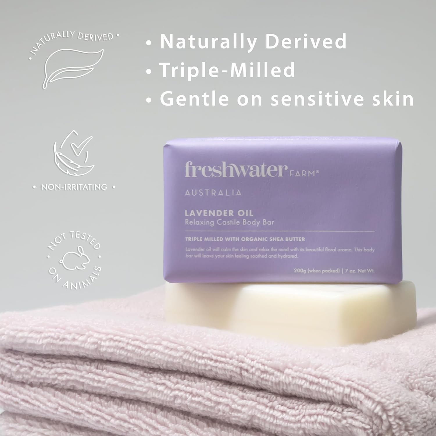 Freshwater Farm Australia Relaxing Castile Natural Bar Soap for Women Men - Lavender Oil - Nourishing Essential Oils For Dry, Sensitive Skin - Natural Bar Soap, Body Soap - 7 oz 8PK, purple