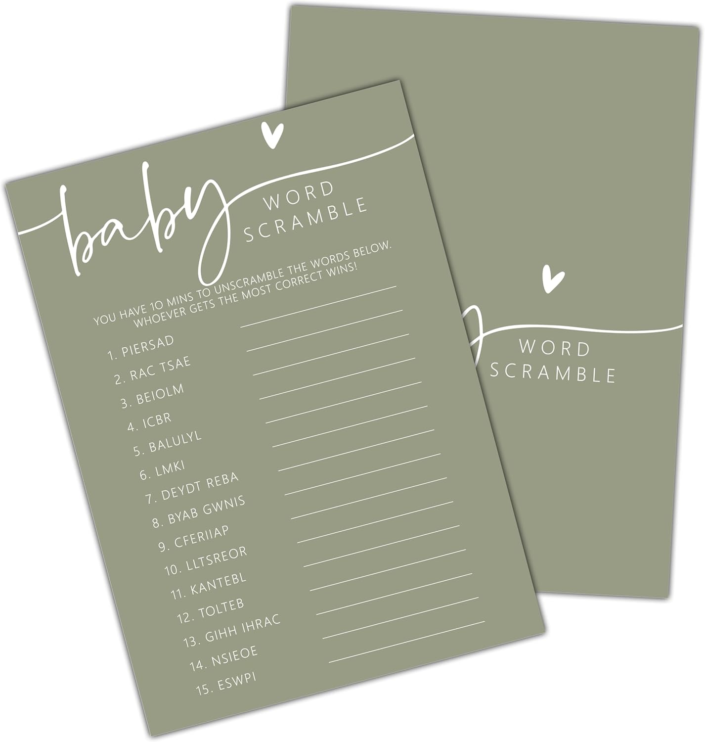ONDTOM Olive Blue Baby Shower Games, Word Scramble Game, Minimalism Baby Gender Reveal Party Game, Pregnant Celebration Decoration Supplies(5"x7")-game-B07