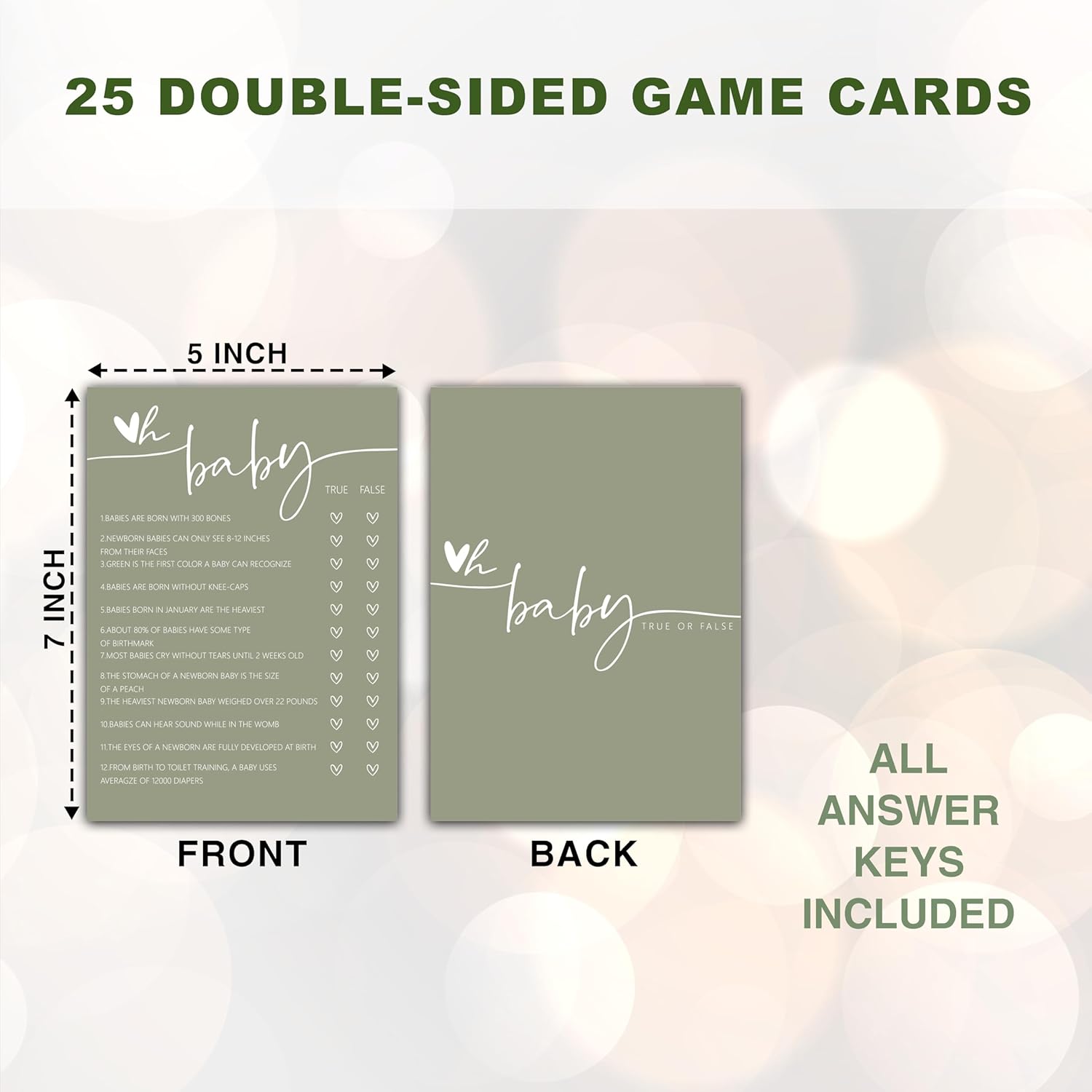 ONDTOM Oh Baby! True or False Cards for Baby Shower Games, Minimalism Gender Reveal Party Game, Pregnant Celebration Decoration Supplies (5"x7") - Game-B05