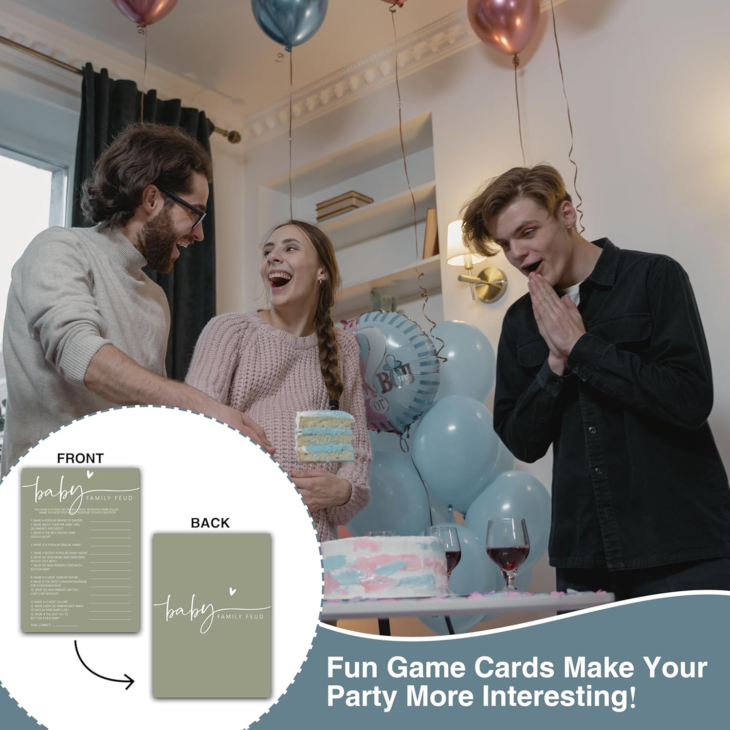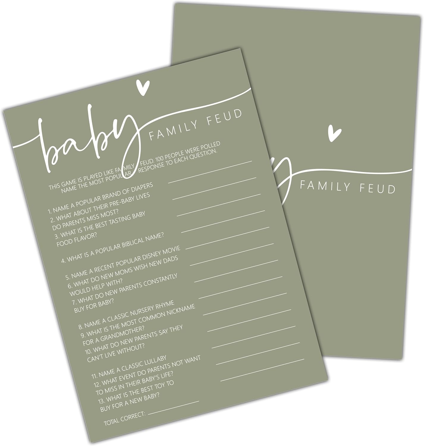 ONDTOM Olive Baby Shower Games, Family Feud, Minimalism Baby Gender Reveal Party Game, Pregnant Celebration Decoration Supplies (5"x7")