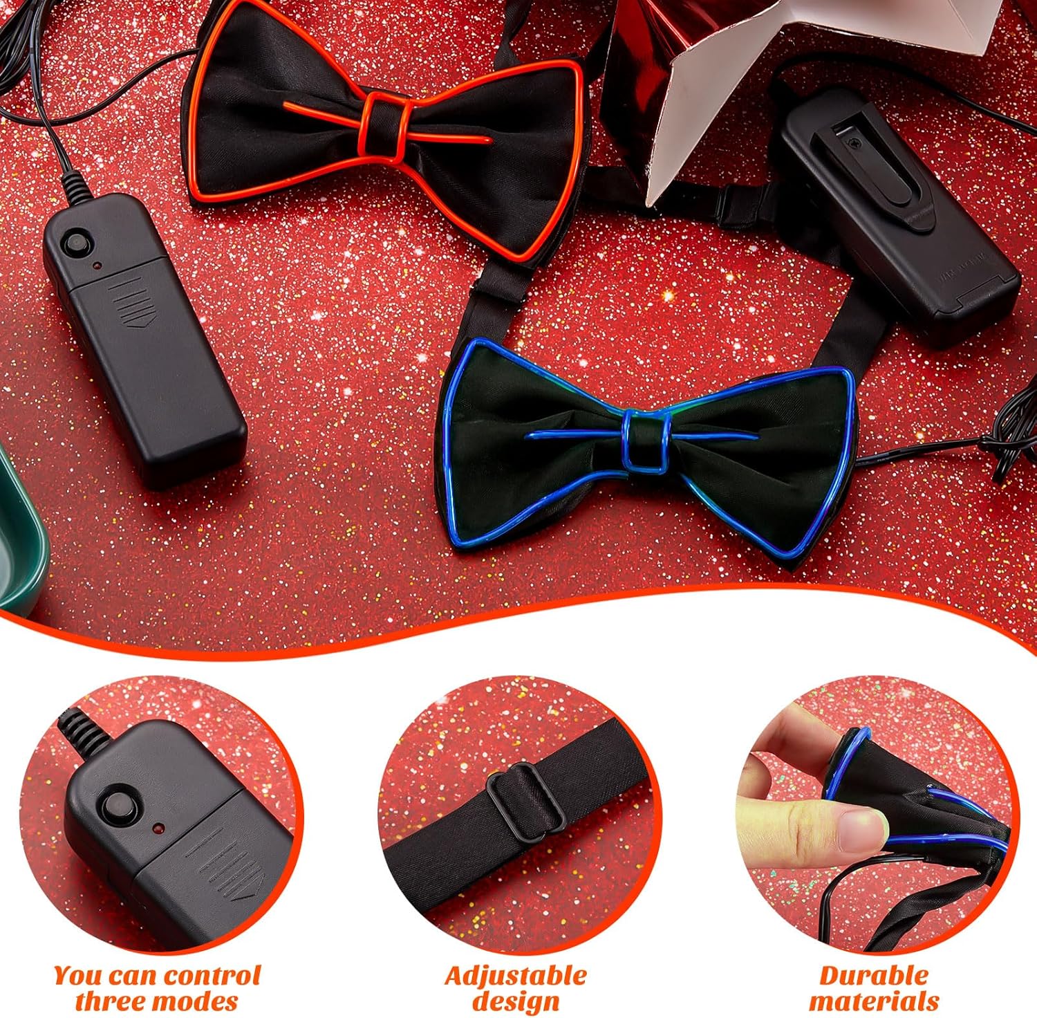 - Quality Material: these neon bowties are made of quality EL wire and polyester, not easily prone to abrasion, bringing you a dazzling visual effect and longer luminous time at night, made for long term use